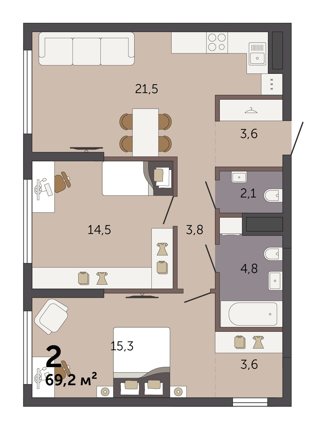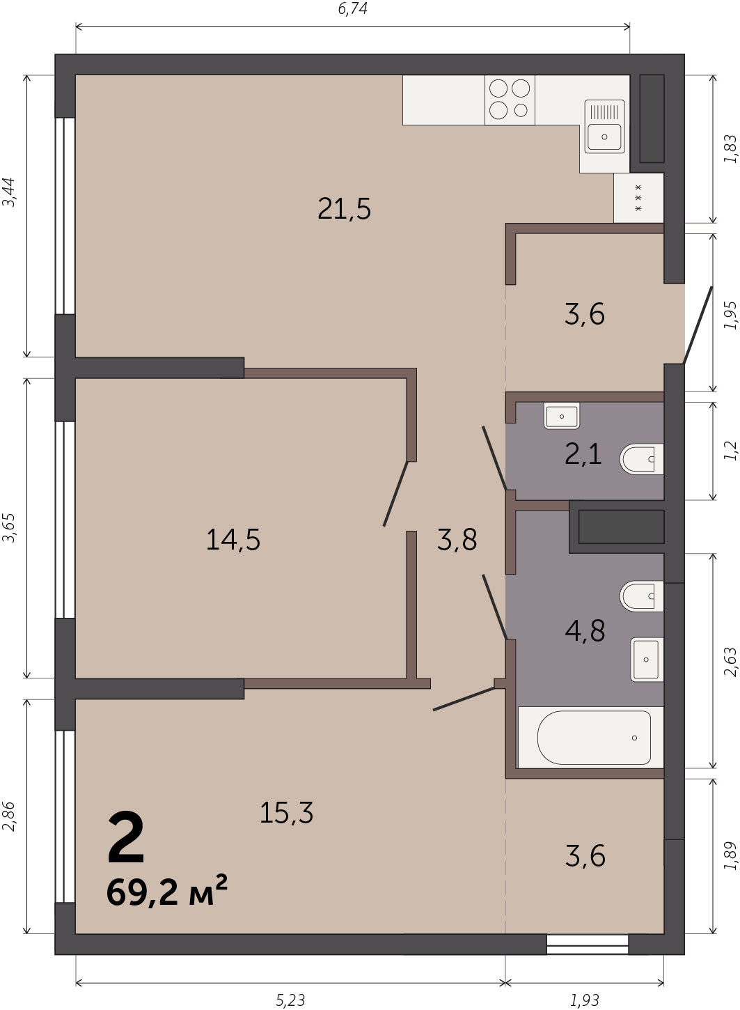 69.10 м² | 2 - 25 эт.