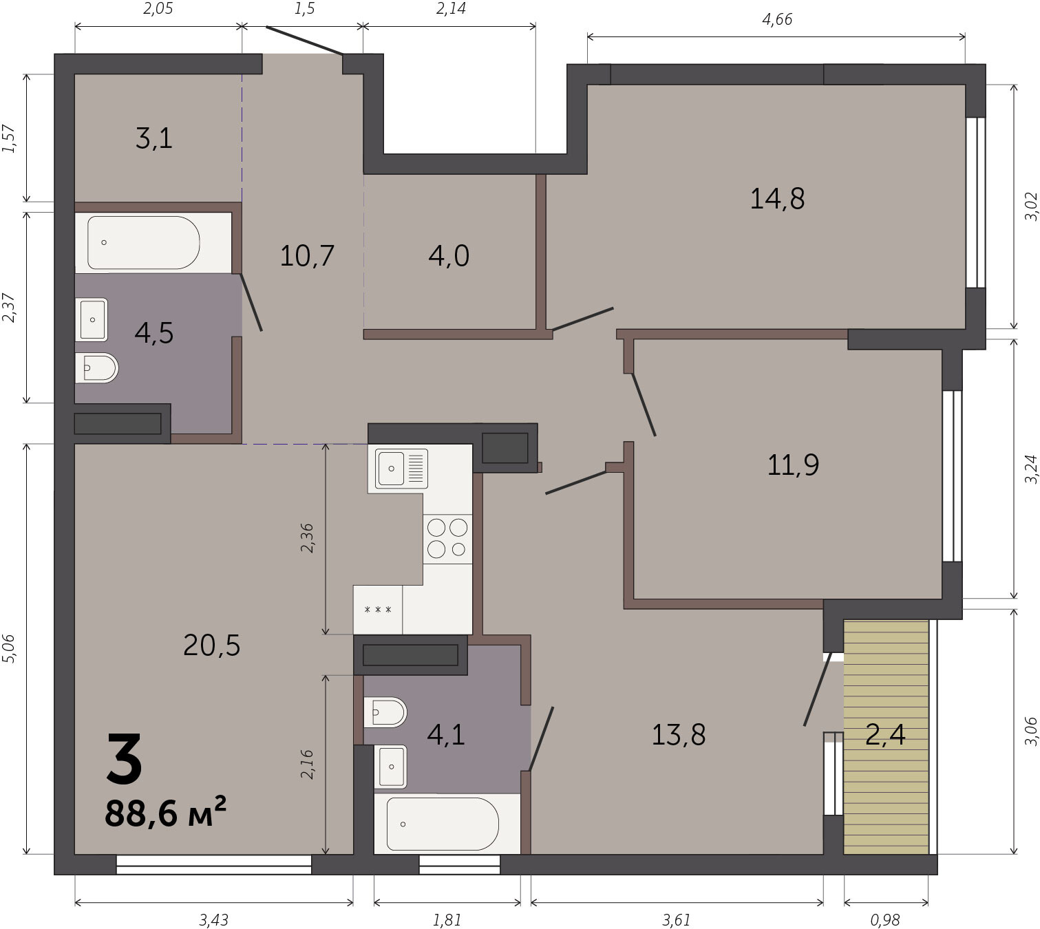88.60 м² | 6 - 32 эт.