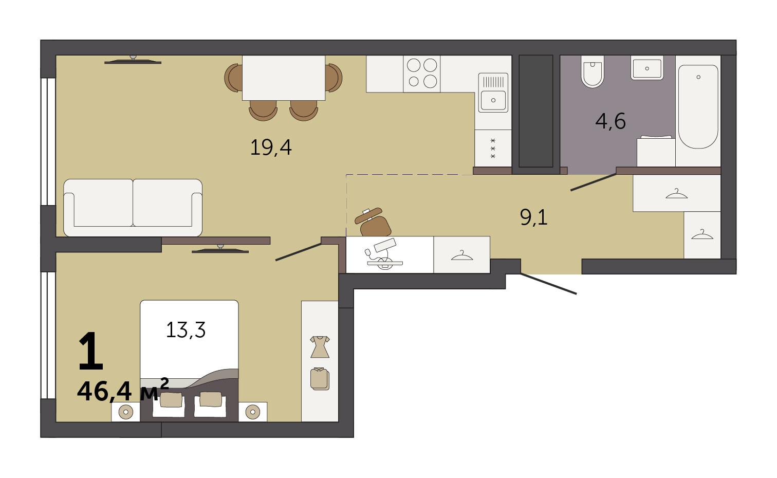 49.30 м² | 21 - 30 эт.