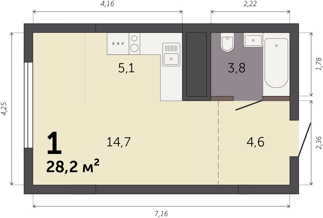 28.20 м² | 32 - 32 эт.
