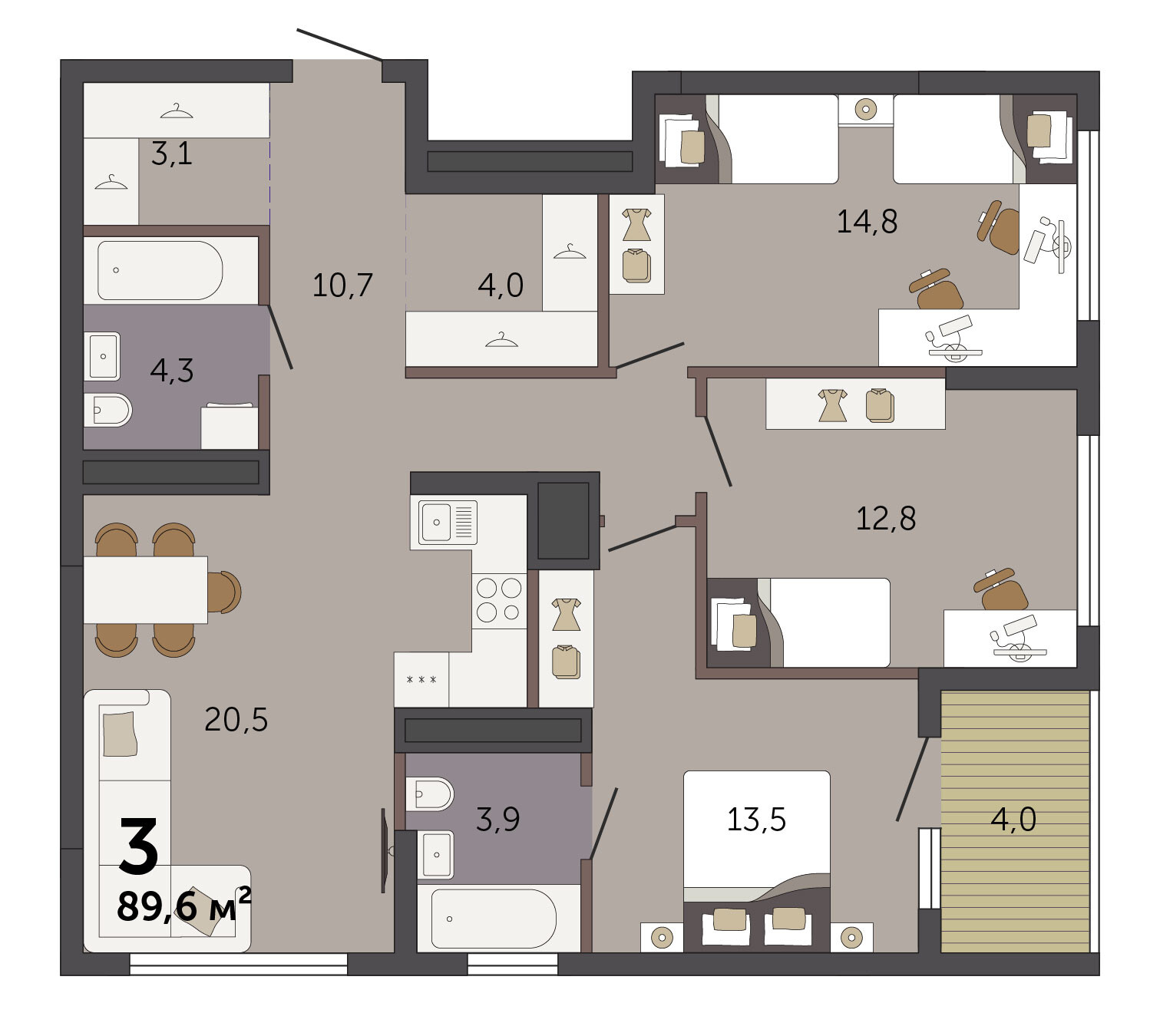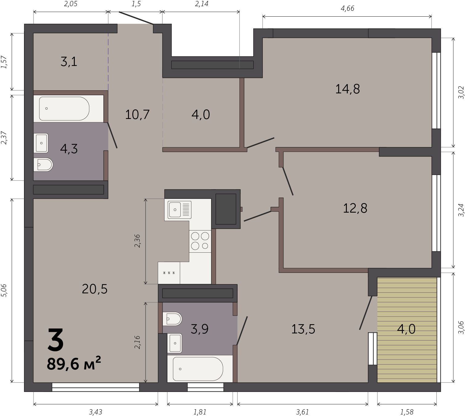 2-к квартира | 71.50 м² | 13 - 25 эт.