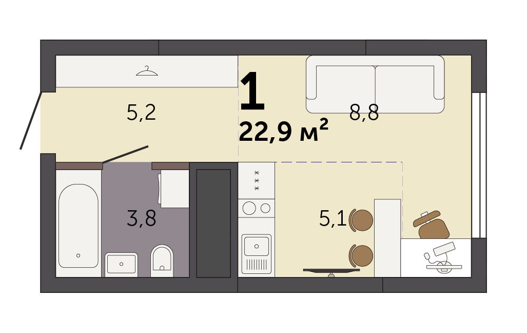 22.30 м² | 22 - 25 эт.