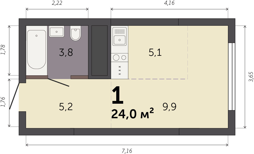 22.20 м² | 24 - 25 эт.