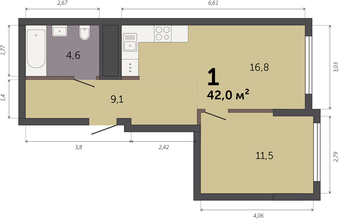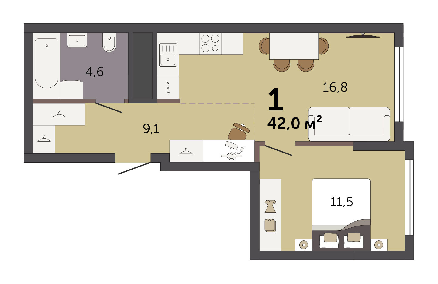 42.00 м² | 16 - 16 эт.