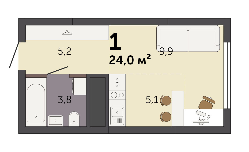 22.20 м² | 24 - 25 эт.