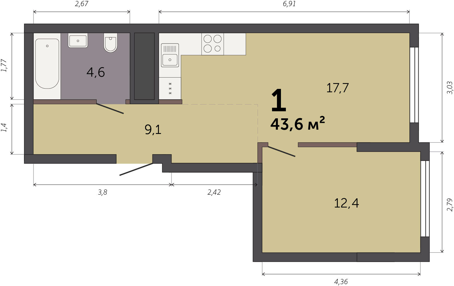 41.80 м² | 17 - 19 эт.
