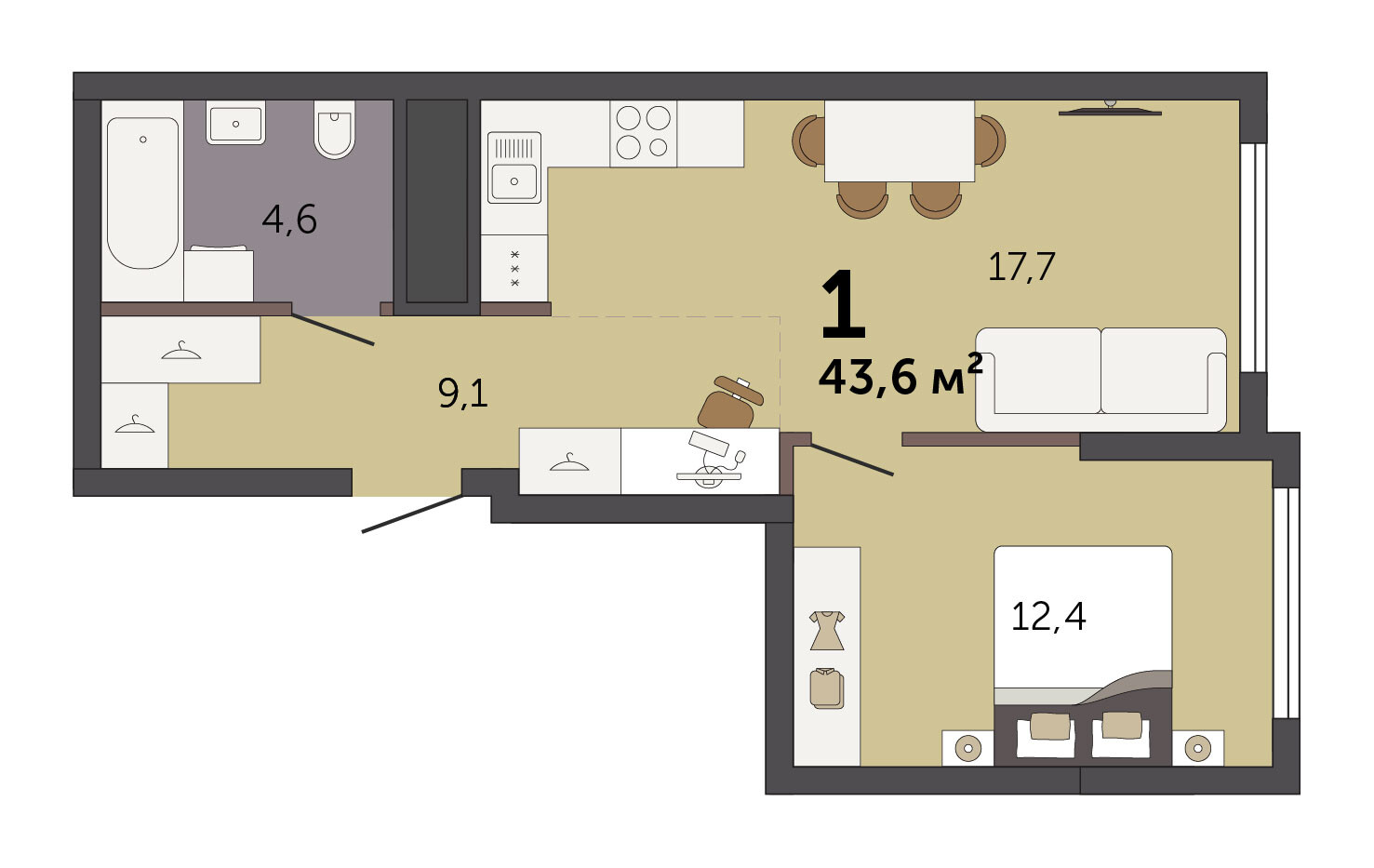 43.80 м² | 20 - 32 эт.