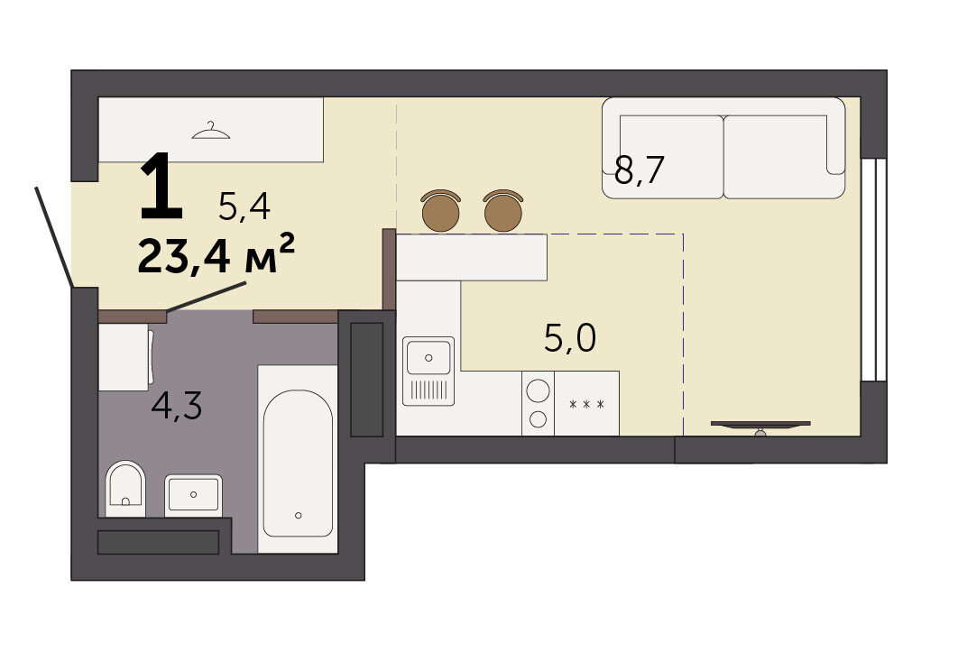 22.20 м² | 21 - 25 эт.