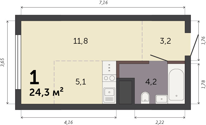 24.30 м² | 13 - 32 эт.