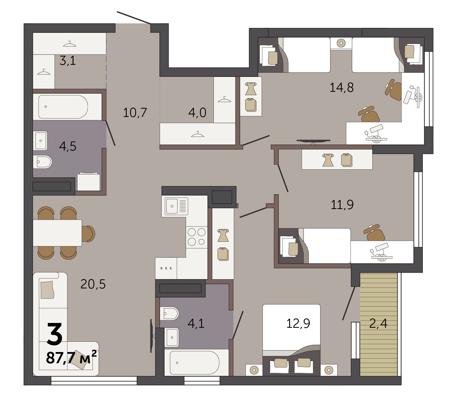 3-к квартира | 88.80 м² | 7 - 29 эт.
