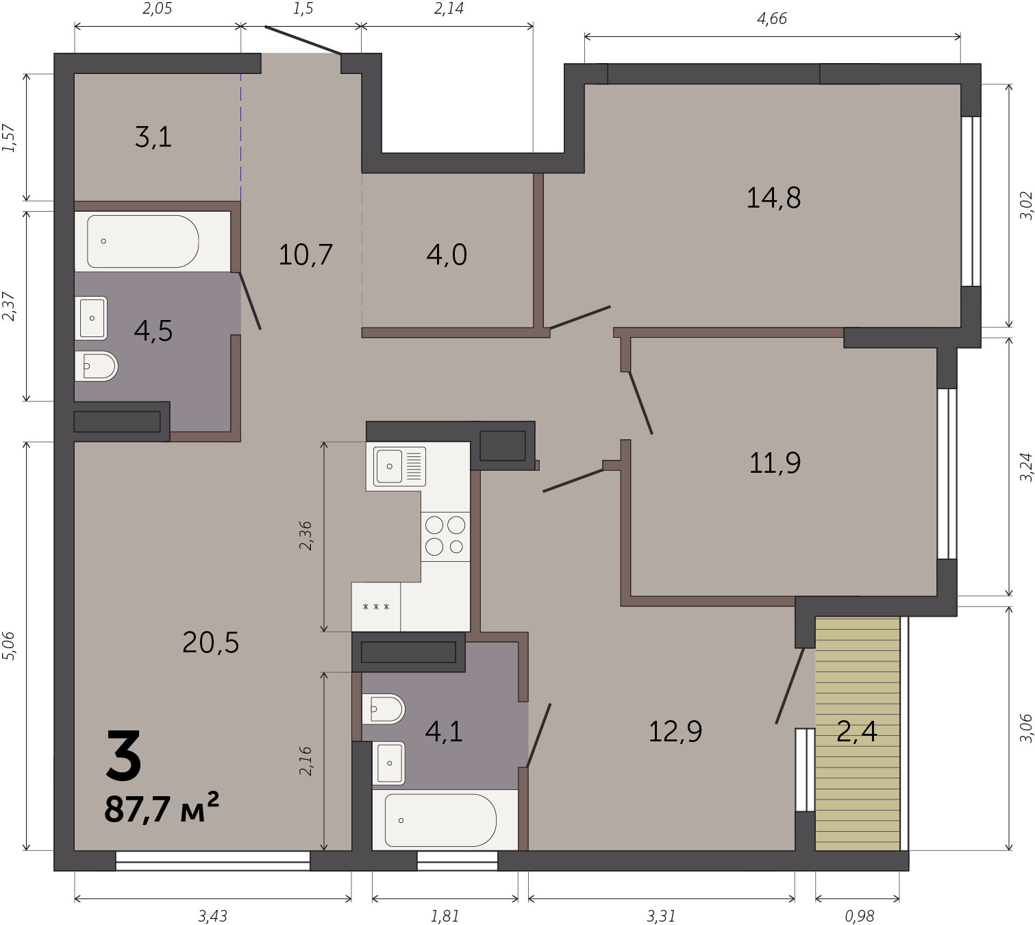 87.70 м² | 9 - 32 эт.