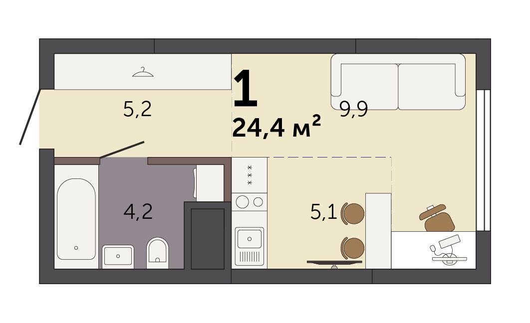 22.20 м² | 24 - 25 эт.