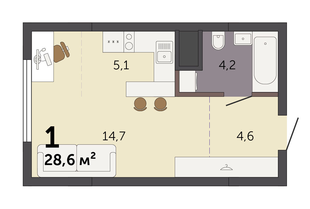 26.20 м² | 26 - 30 эт.