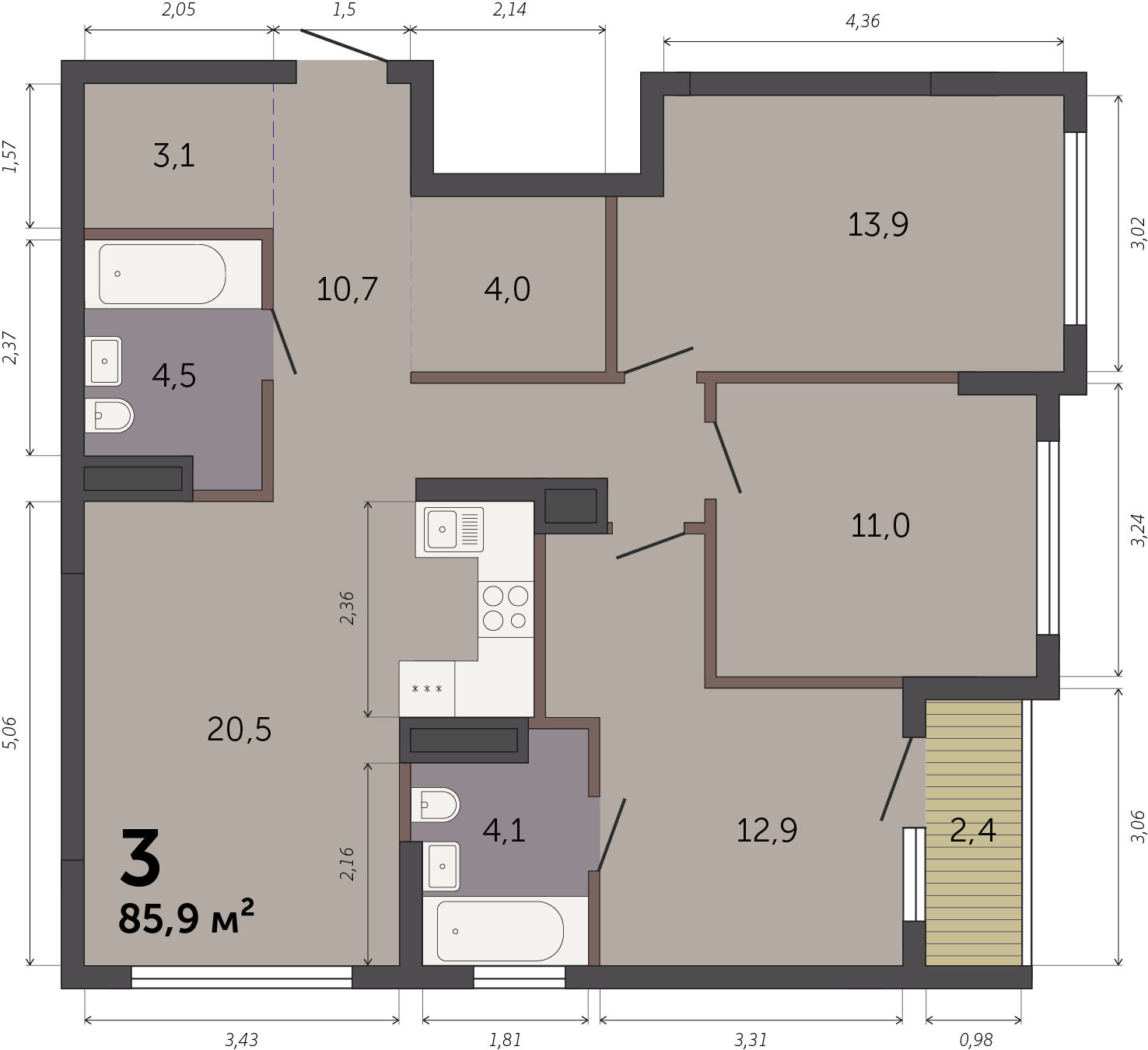 85.90 м² | 5 - 32 эт.