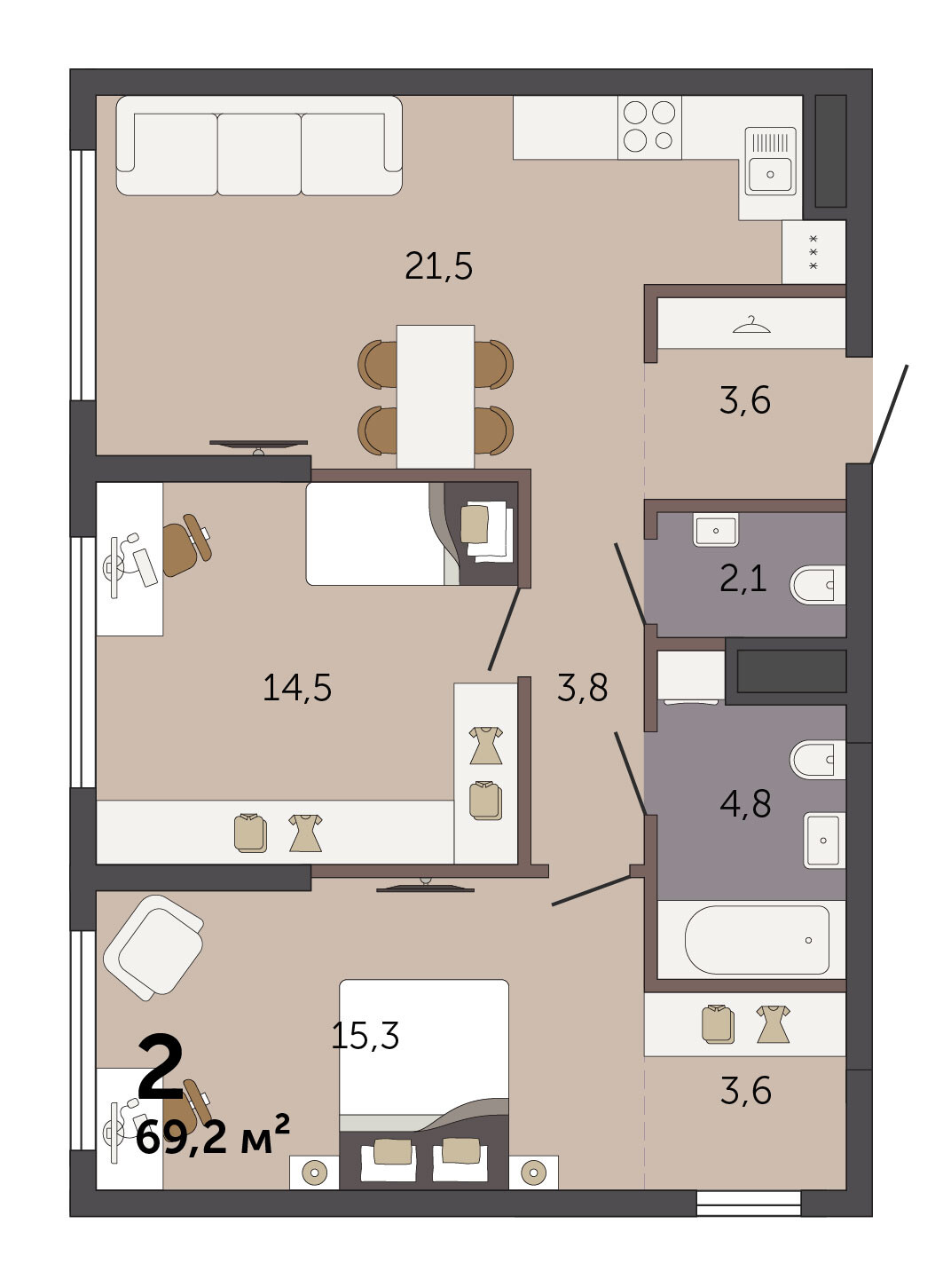69.20 м² | 5 - 32 эт.