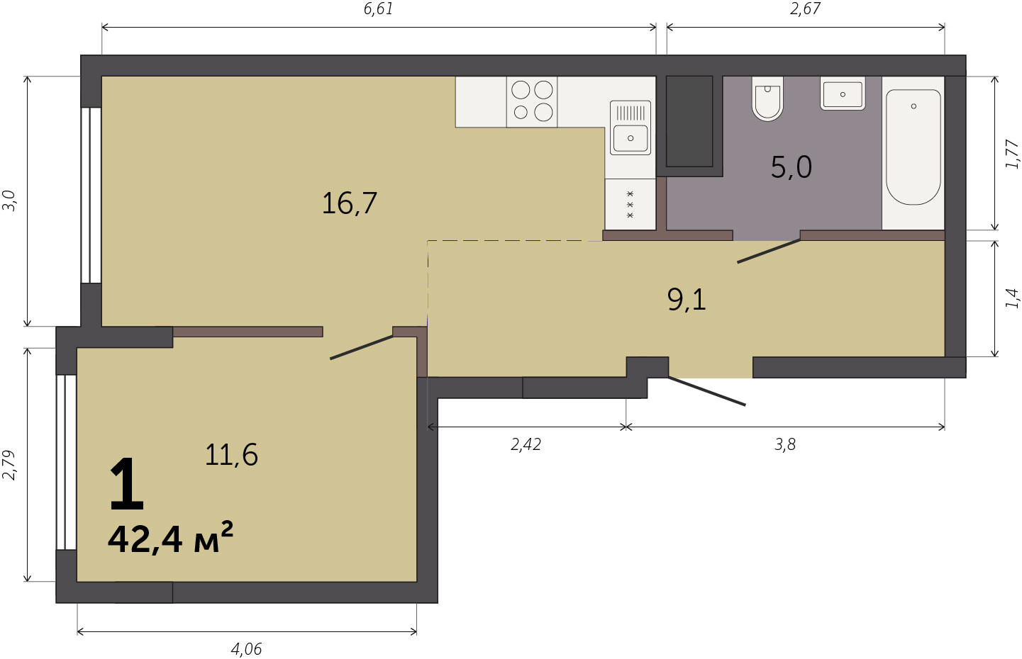 42.40 м² | 3 - 32 эт.
