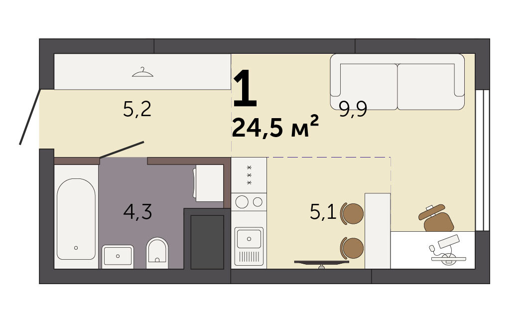 24.50 м² | 2 - 32 эт.