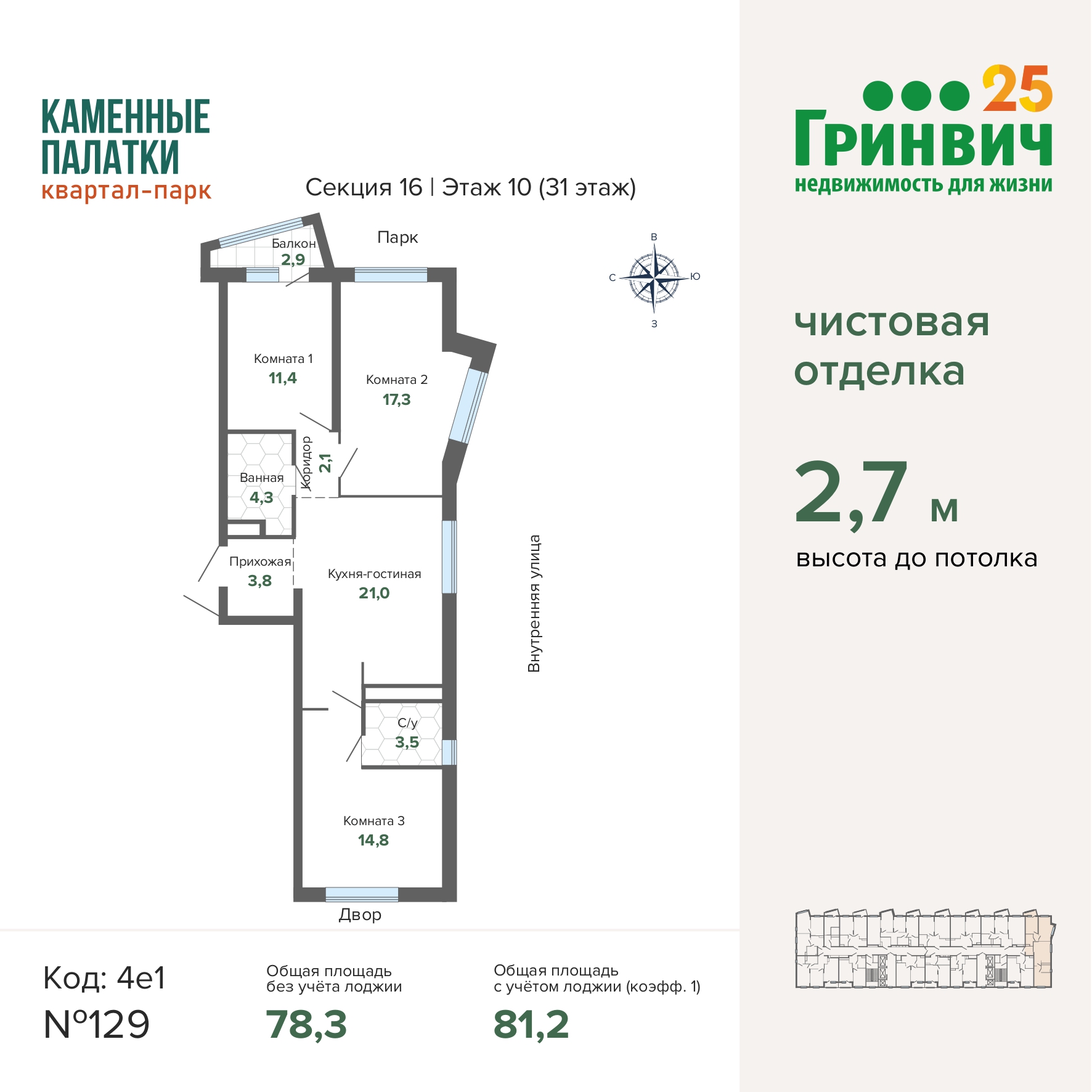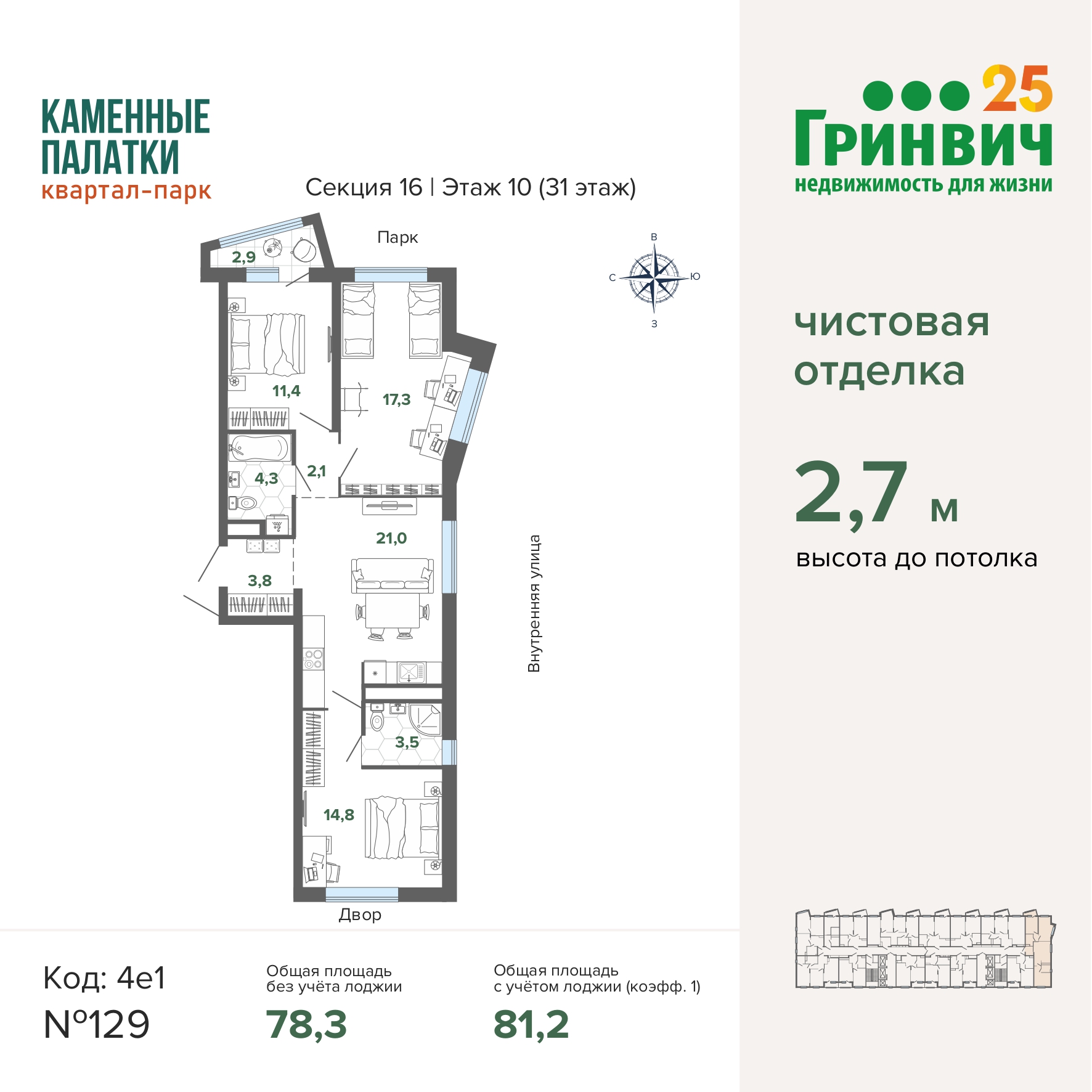 Продается квартира в современном Квартал-парке «Каменные Палатки» – новый жилой комплекс комфорт-класса расположен на границе микрорайонов ЖБИ и Втузгородок, в 15 минутах от центра города рядом с природным парком Каменные палатки и озером Шарташ.<br><br>В продаже 4 очередь (секция 16).<br>Срок сдачи – 4 квартал 2025 года<br><br>Преимущества квартир:<br><br>• Высокие потолки (2,7 м);<br>• Качественная чистовая отделка: входные двери, ламинат, обои под покраску, установлена сантехника;<br>• Горизонтальная разводка систем отопления – свободные стены;<br>• Счетчики на э/э, воду и тепло – ежемесячная экономия на коммунальных платежах;<br>• Сделаны входы для слаботочных сетей (интернет, телефон, цифровое телевидение).<br><br>Преимущества дома:<br>• Просторная закрытая придомовая территория;<br>• Прямо из комплекса выход в природный парк Каменные Палатки;<br>• Просторная наземная парковка и подземный паркинг;<br>• Муниципальный детский сад в 3й очереди на 200 мест;<br>• В жилом комплексе расположены ЖизньМарт, Монетка, Пятёрочка, пункты выдачи ЯндексМаркет, Ozon и Wildberries. Детский оздоровительный центр и кинологический клуб. <br>• В нескольких минутах от дома расположены: гимназия № 45, пять детских садов, гипермаркет «Мегамарт».
