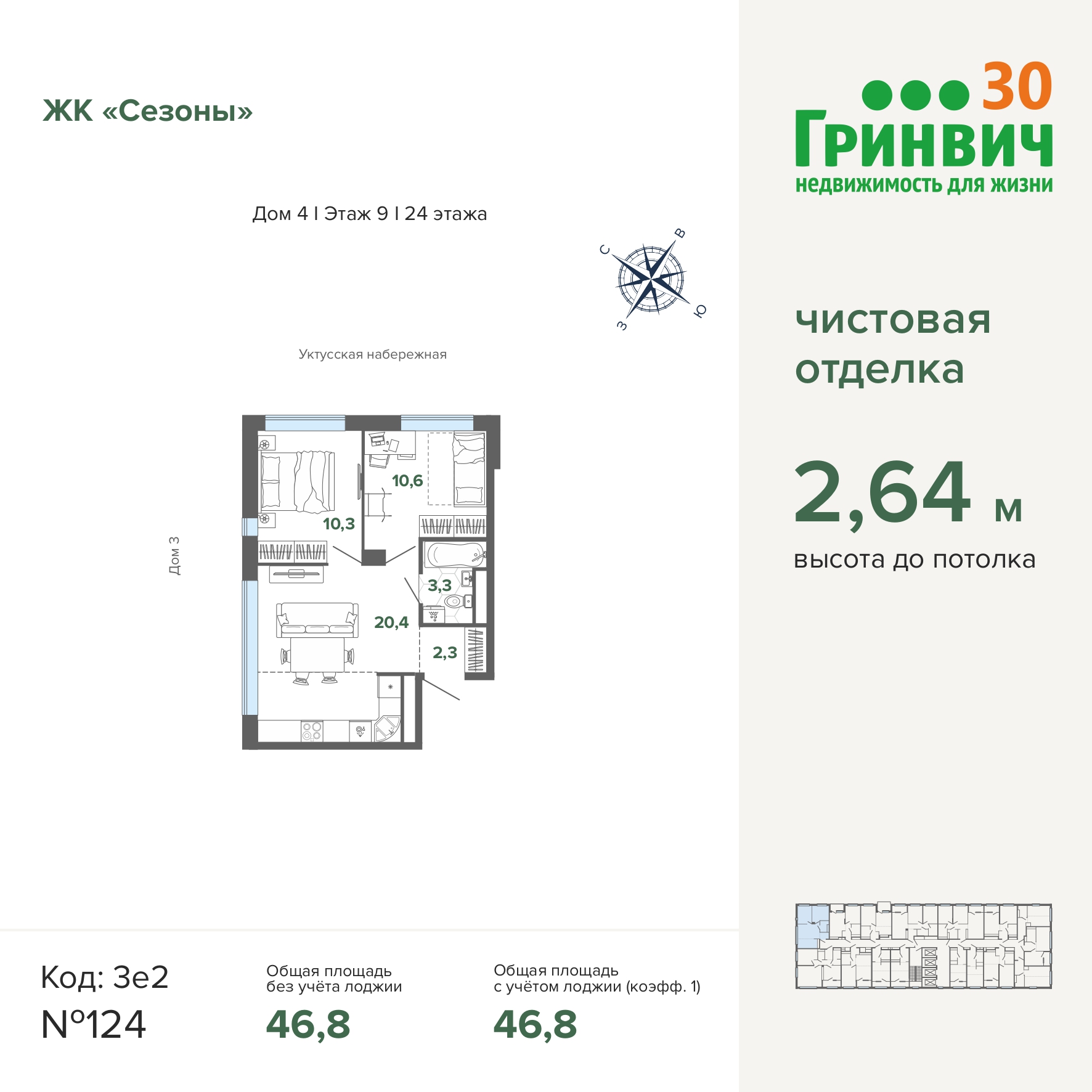 46.83 м² | 9 - 24 эт.