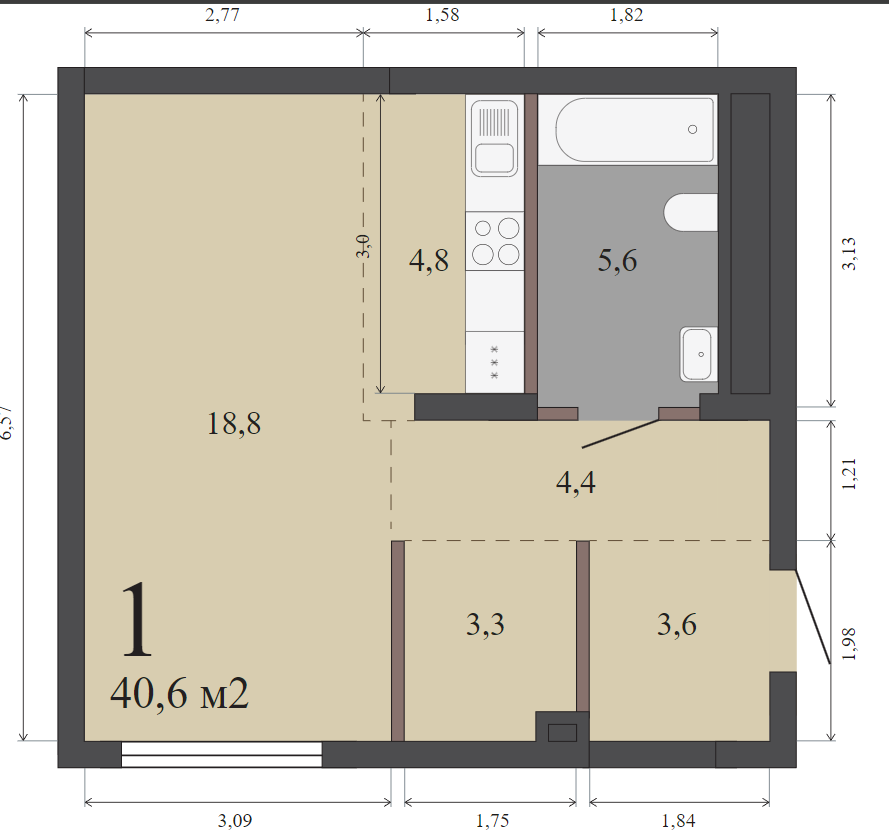 40.60 м² | 8 - 32 эт.