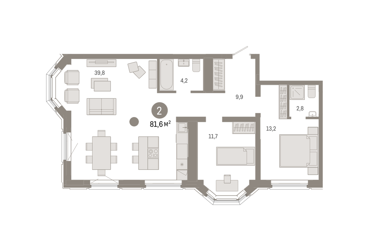 Продаётся с кладовой. Квартира с кухней-гостиной и двумя спальнями в квартале «На Некрасова». Особенности планировки: ипотека 0,11%, мастер-спальня, предчистовая отделка. № квартиры в нашей базе: НКР02-Ж1.15.1.