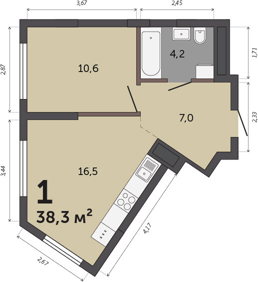 38.30 м² | 26 - 30 эт.