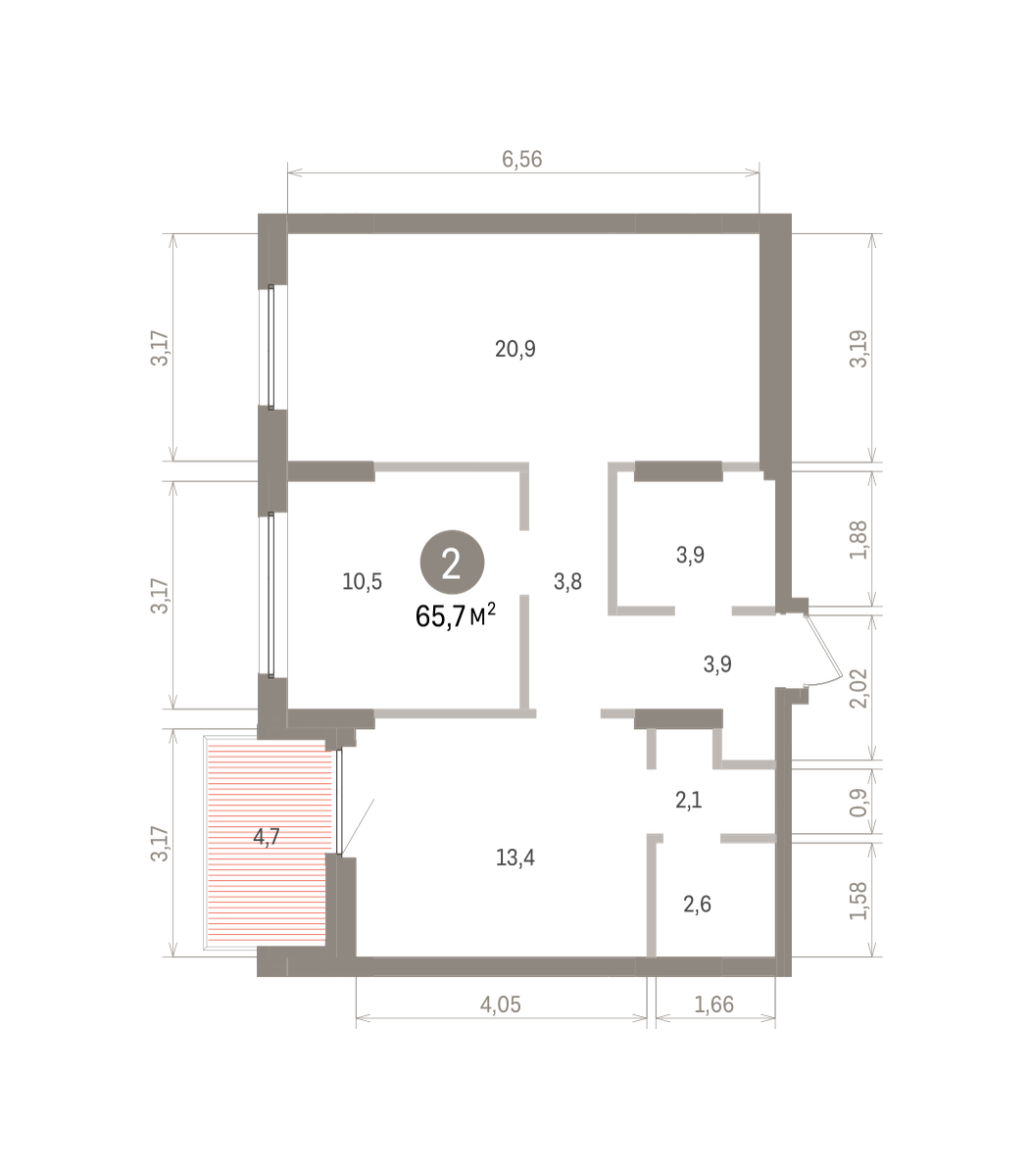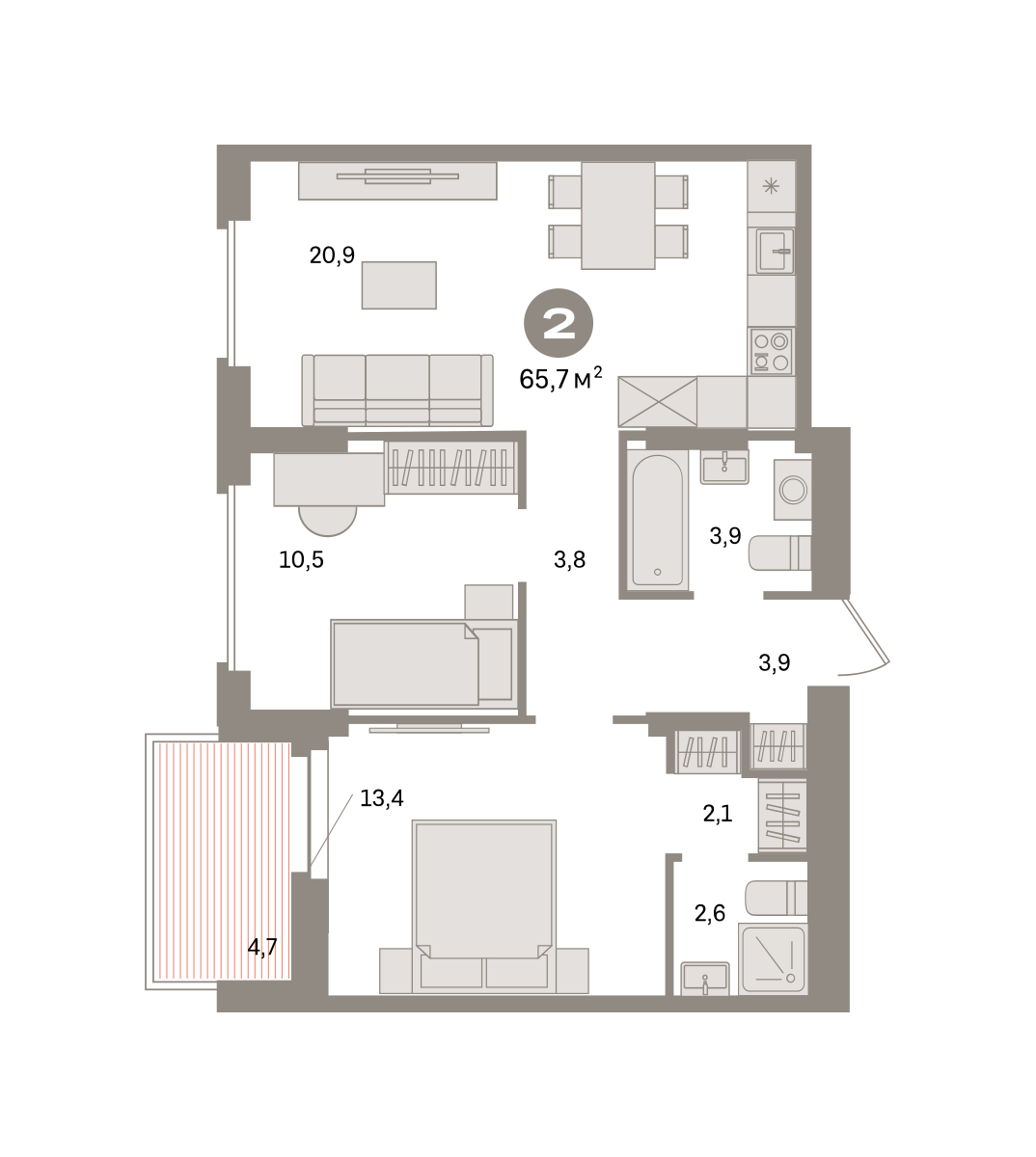 Продаётся с кладовой. Квартира с кухней-гостиной и двумя спальнями в квартале «Депо». Особенности планировки: балкон, гардеробная, мастер-спальня, предчистовая отделка. № квартиры в нашей базе: ДЕП07-Ж1.6.6.