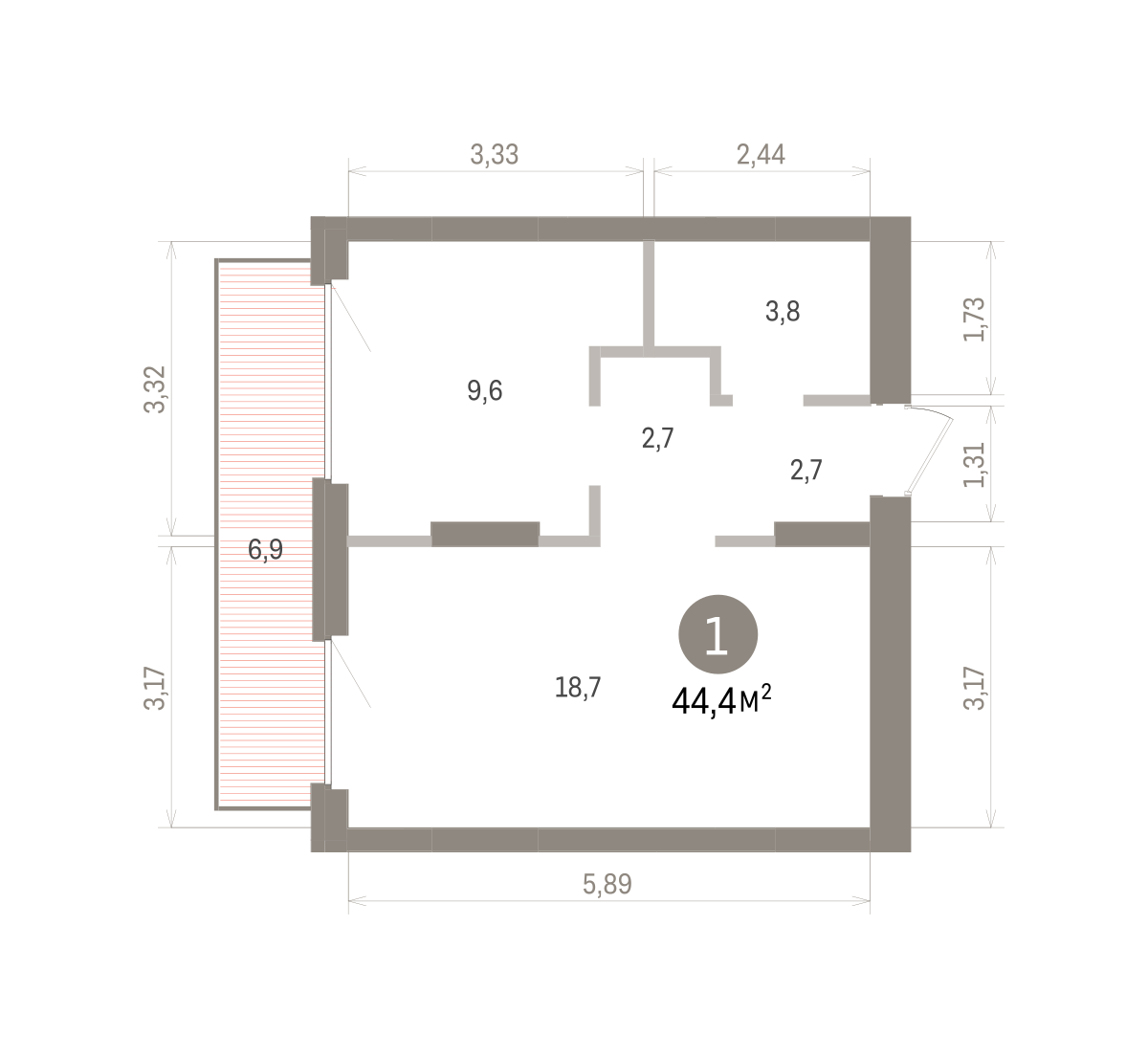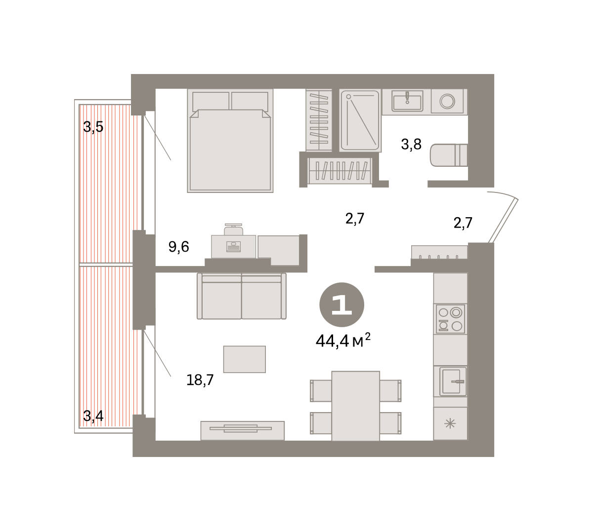 Квартира с кухней-гостиной и одной спальней в квартале «Депо». Особенности планировки: балкон, двойная выгода, предчистовая отделка. № квартиры в нашей базе: ДЕП07-Ж6.6.5.
