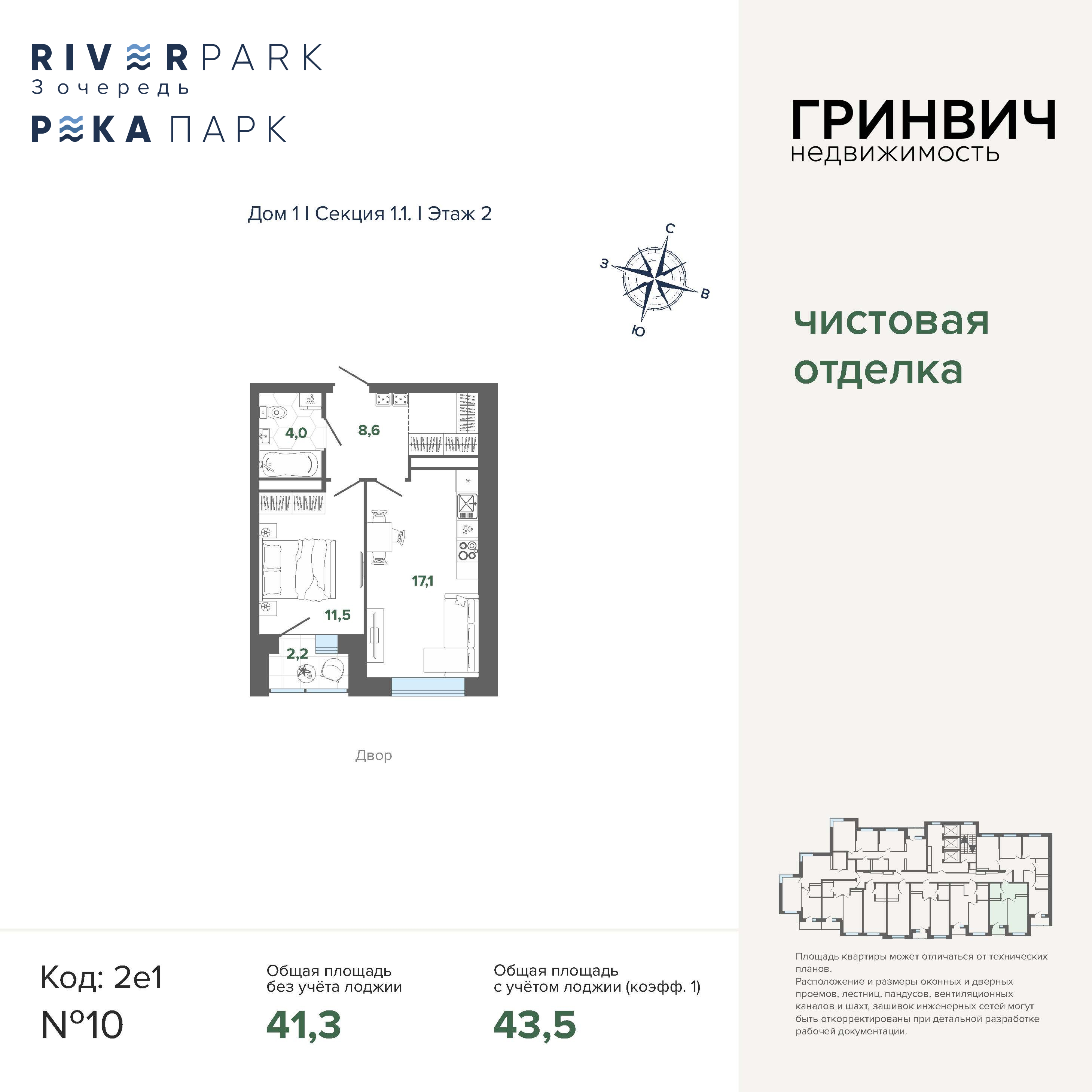 43.51 м² | 2 - 24 эт.