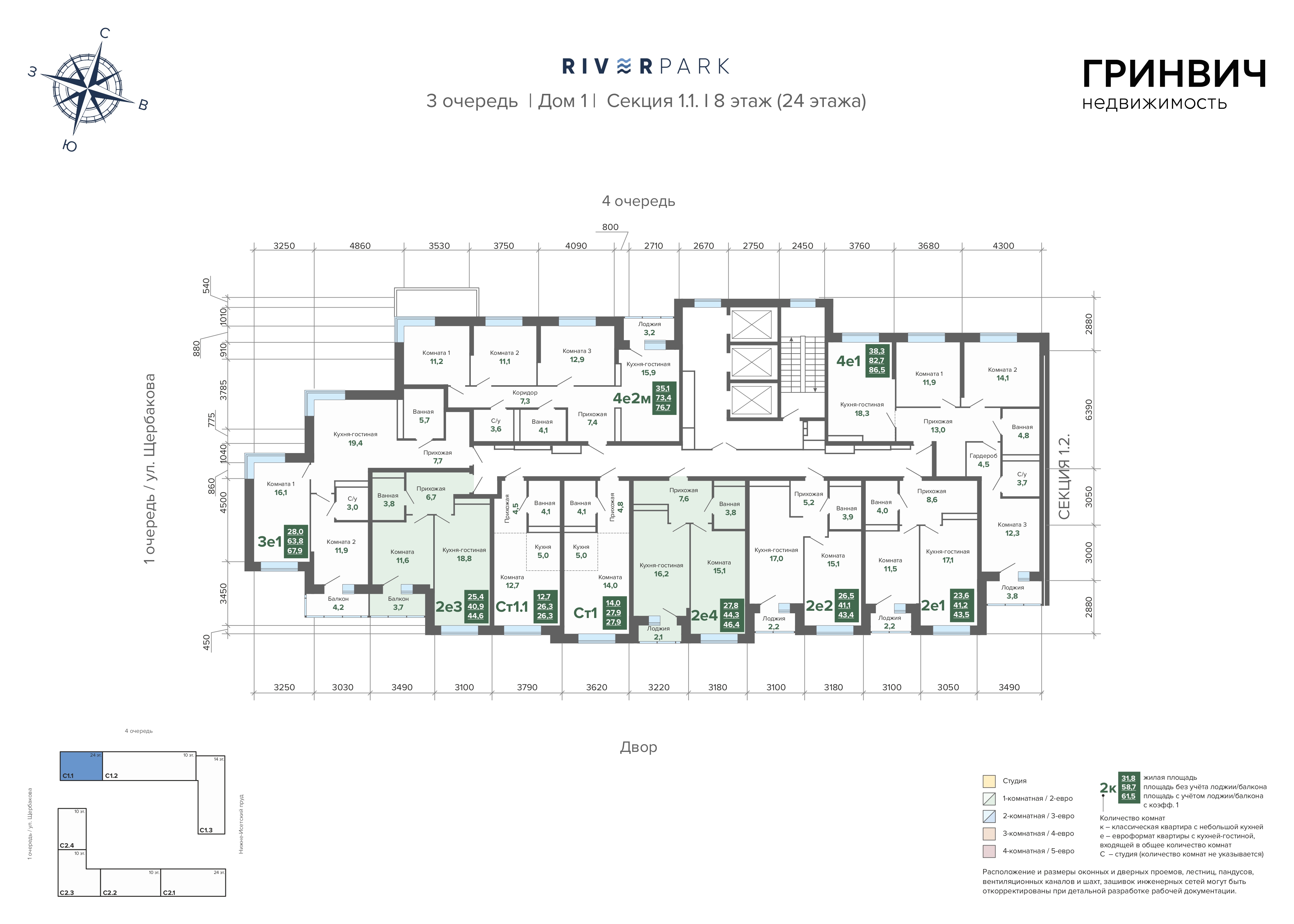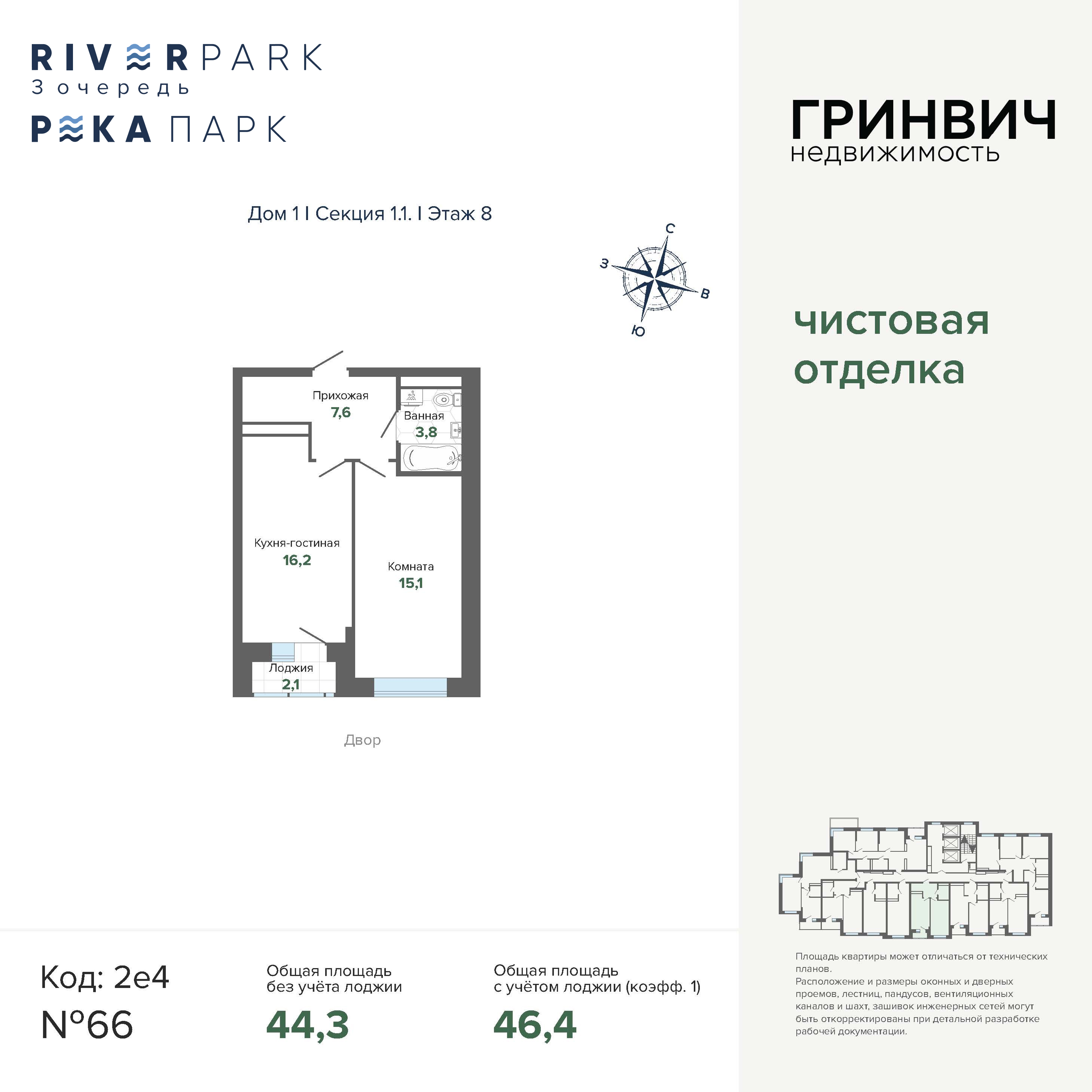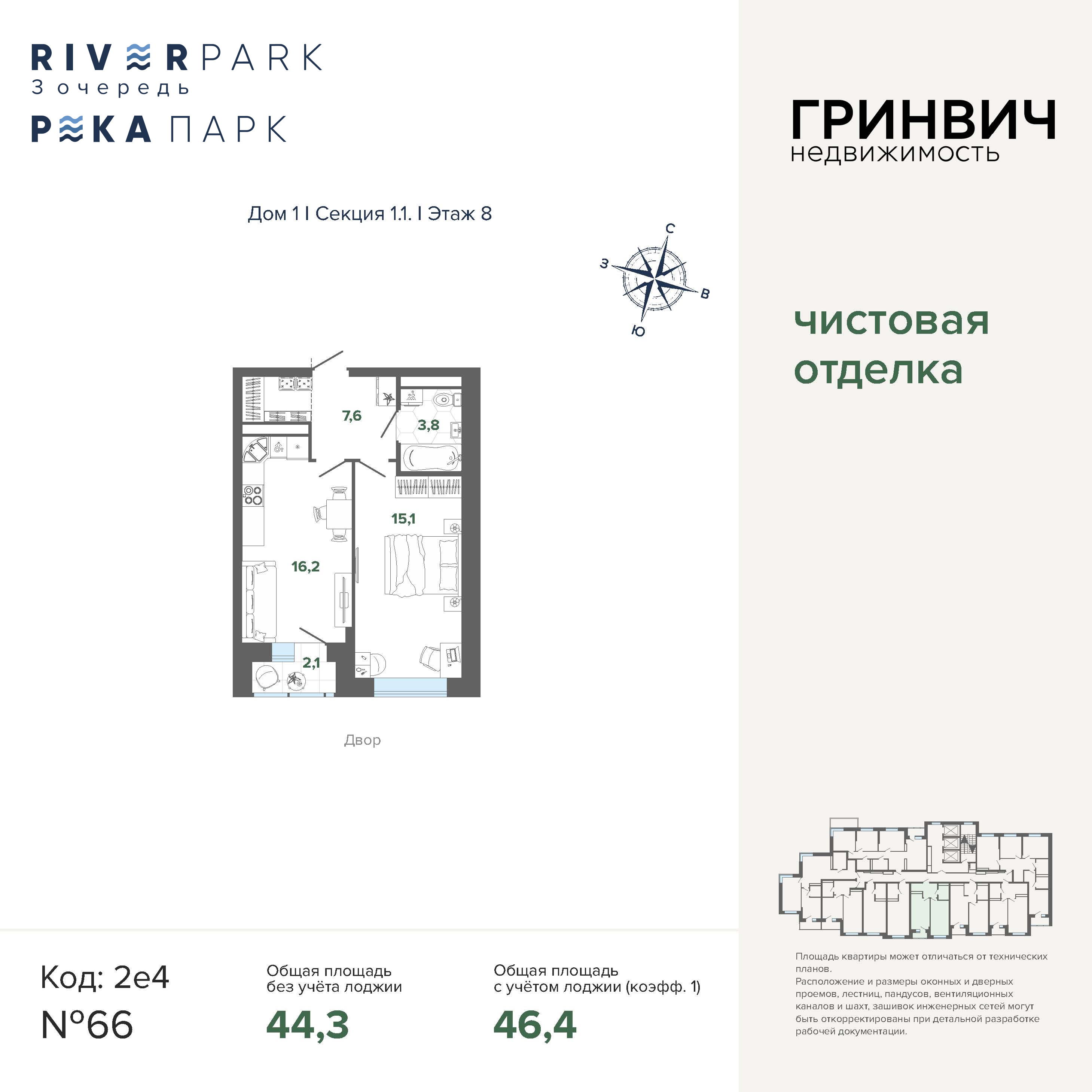 46.35 м² | 8 - 24 эт.