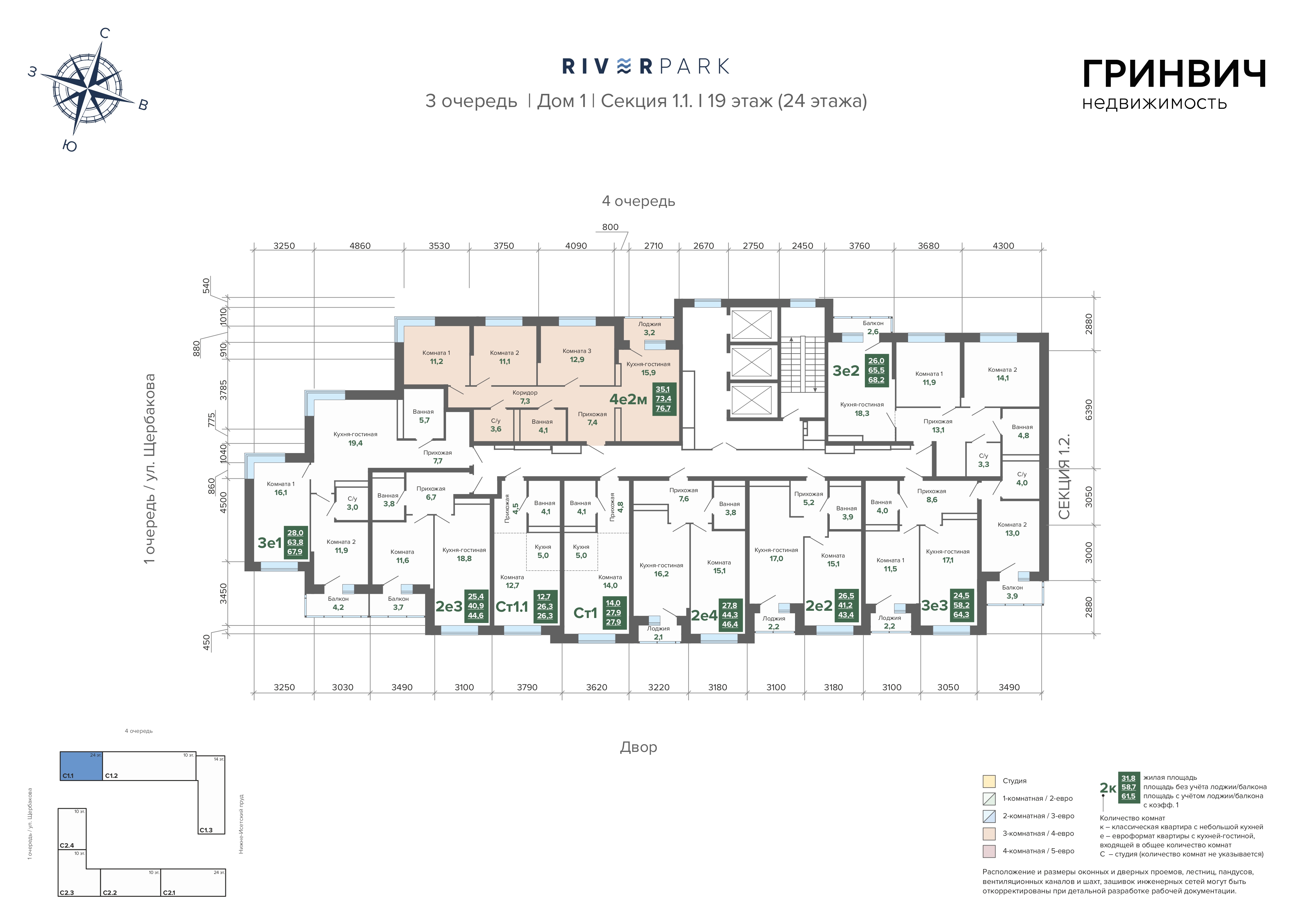 71.70 м² | 6 - 19 эт.