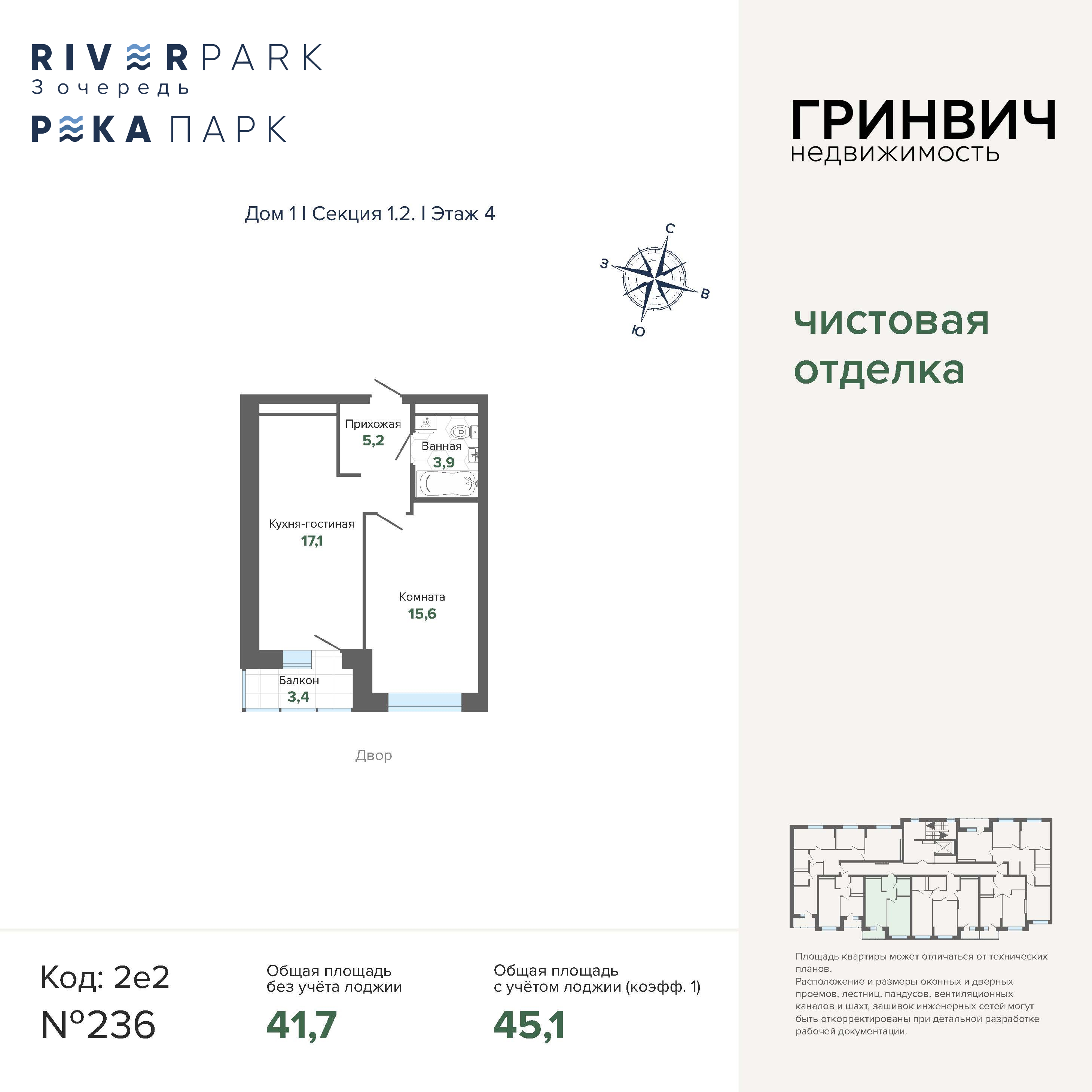 45.15 м² | 4 - 24 эт.