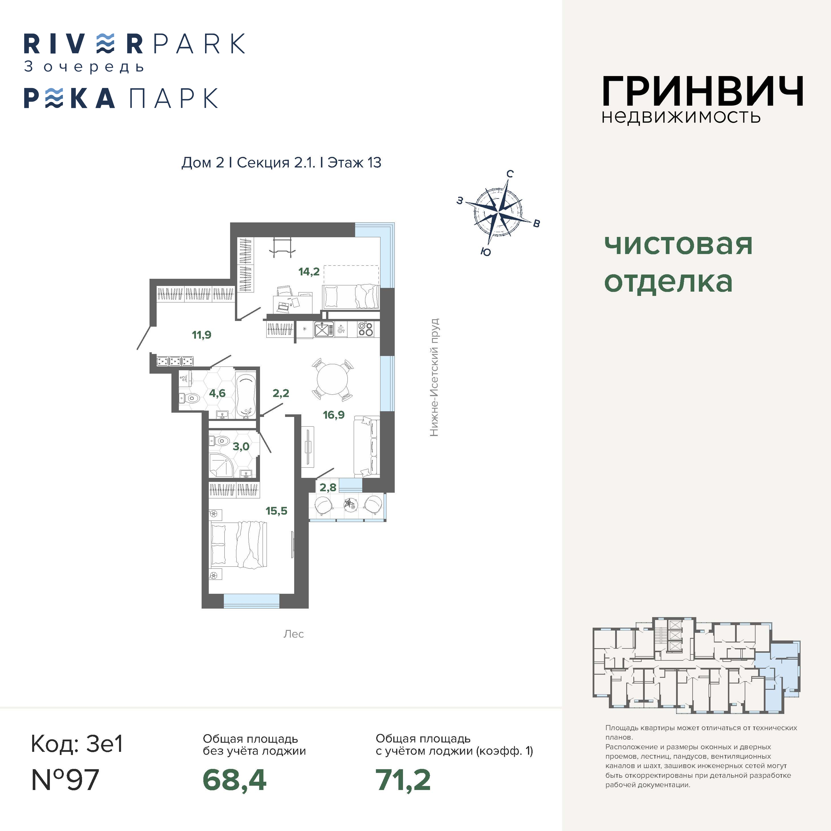 71.18 м² | 13 - 24 эт.