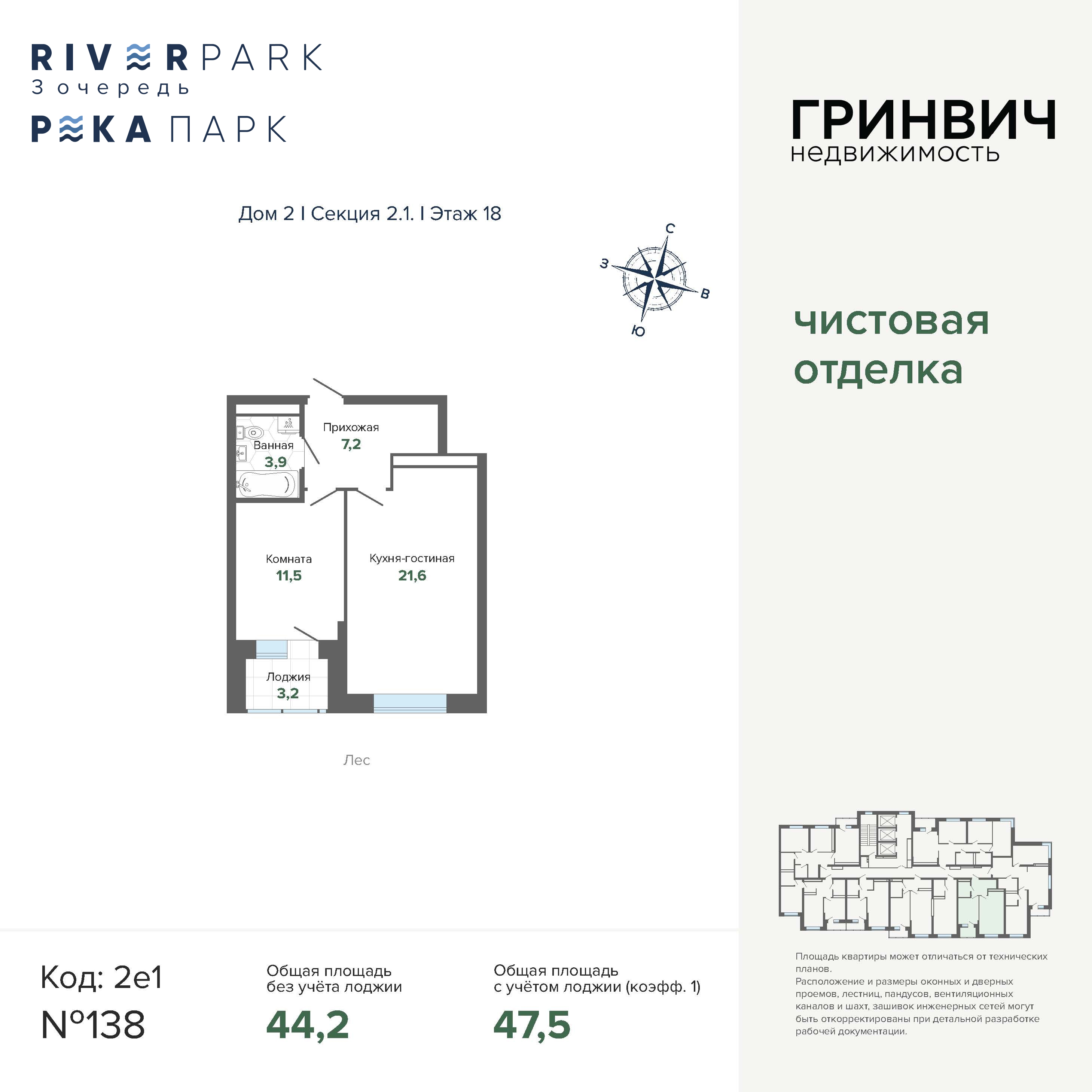 47.47 м² | 18 - 24 эт.