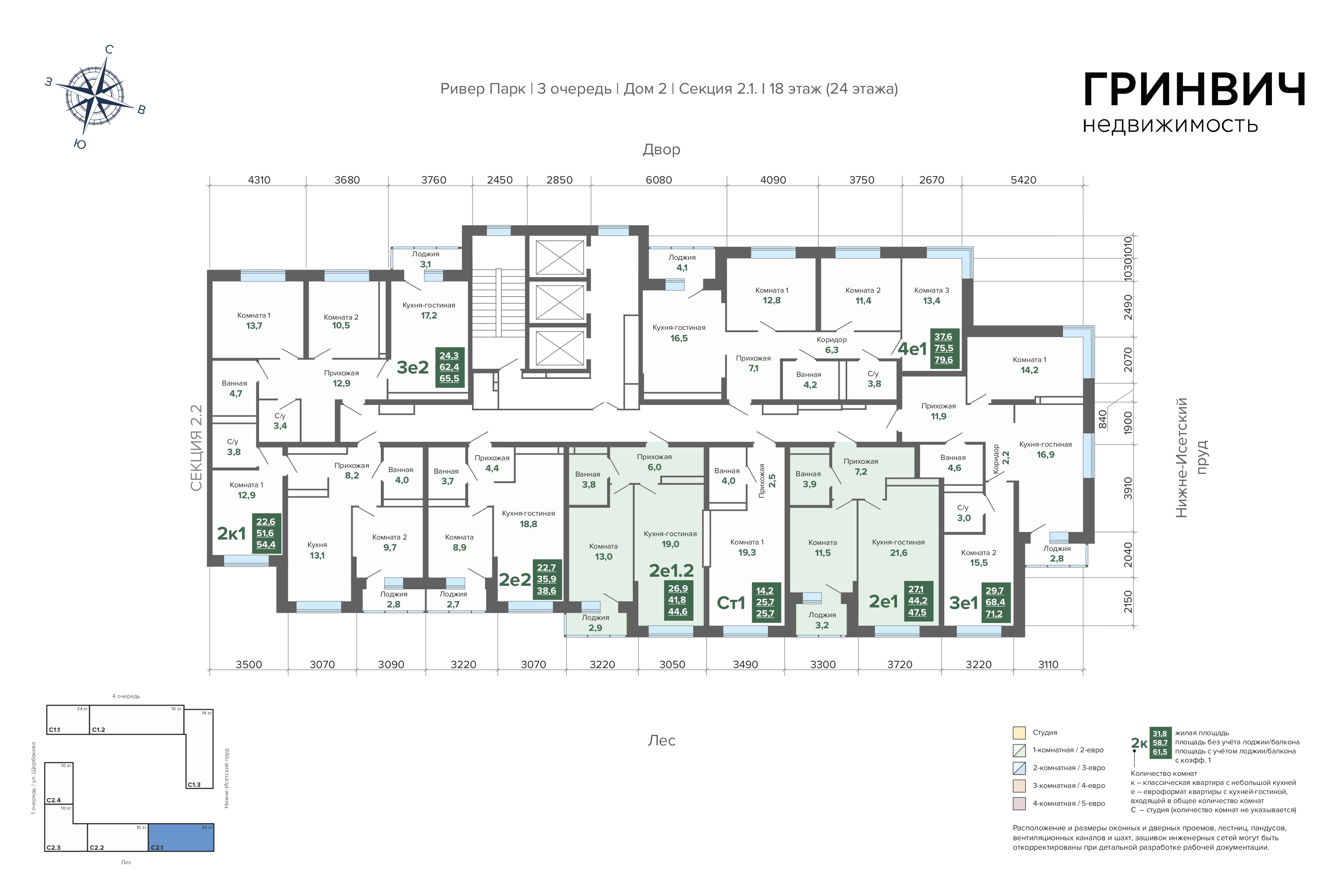 52.00 м² | 14 - 16 эт.