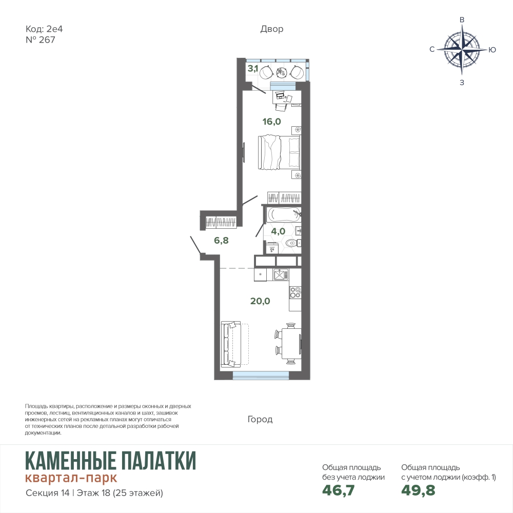 49.85 м² | 18 - 25 эт.