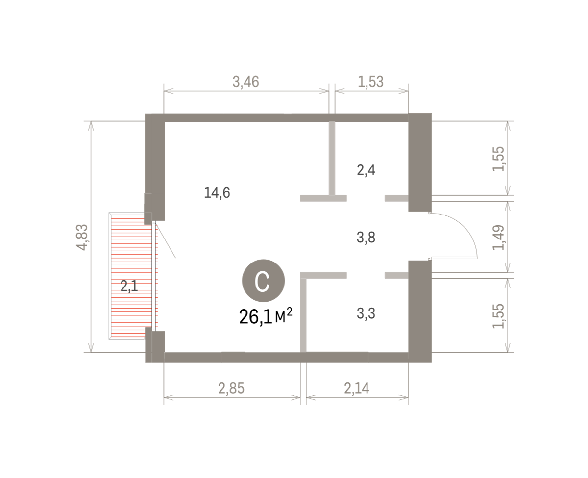 26.00 м² | 4 - 9 эт.