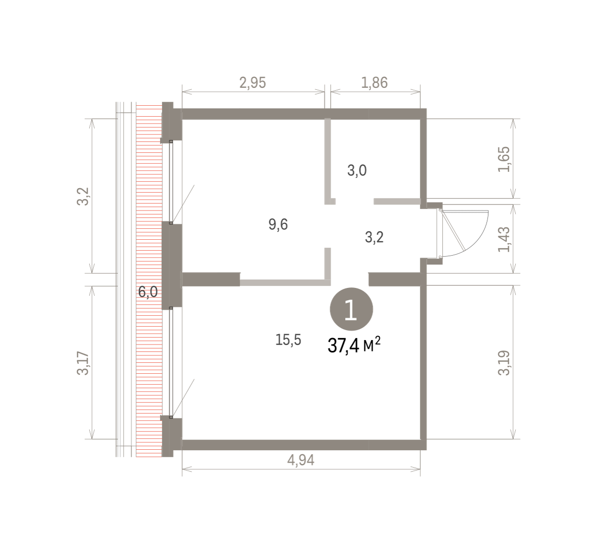 37.00 м² | 8 - 9 эт.