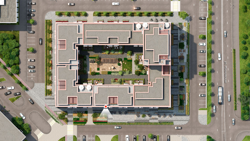 Квартира с кухней-гостиной и двумя спальнями в Южных кварталах. Особенности планировки: гардеробная, летняя кухня на крыше, лоджия, мастер-спальня, окно в коридоре, постирочная, предчистовая отделка, разнесённые спальни, терраса на крыше.