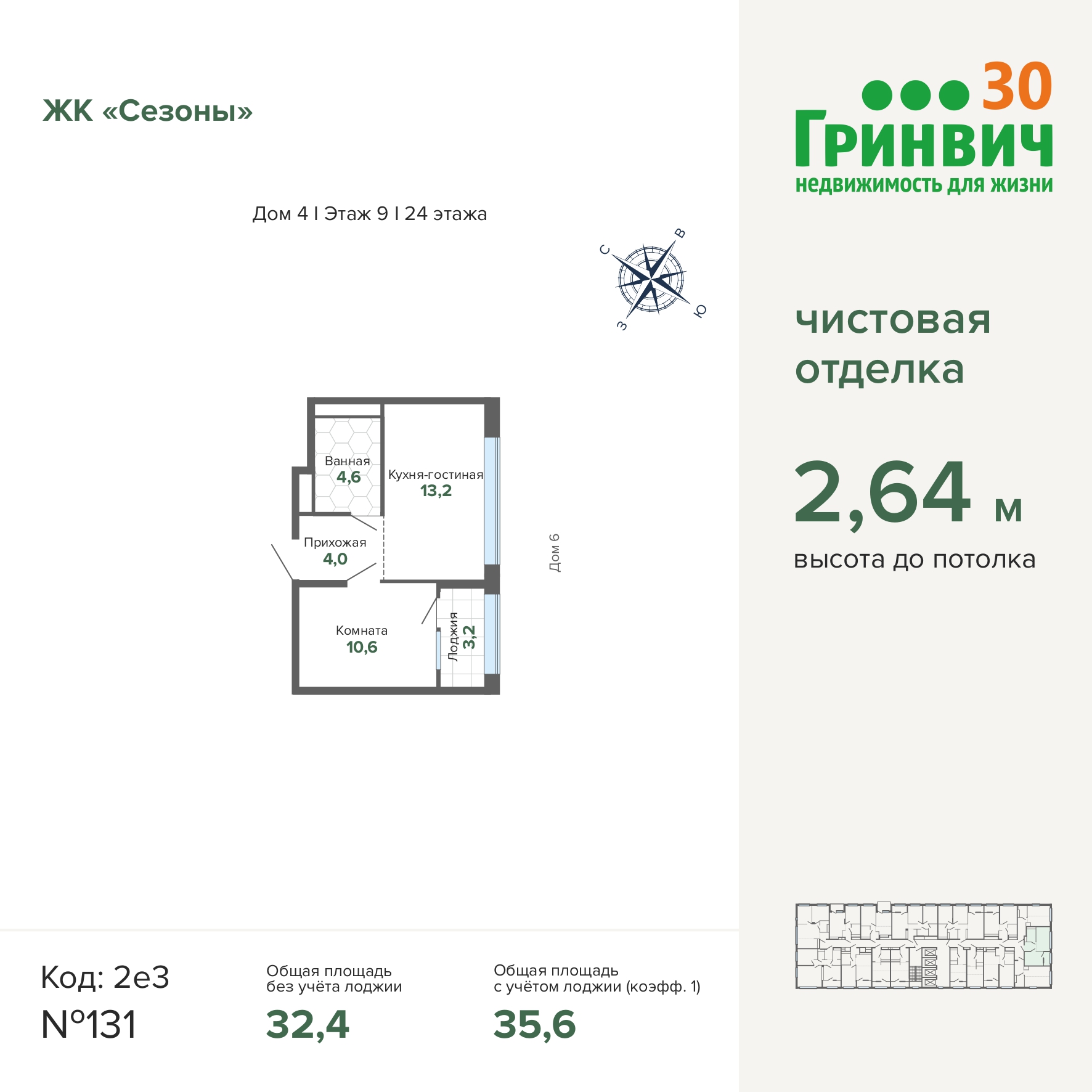35.63 м² | 9 - 24 эт.