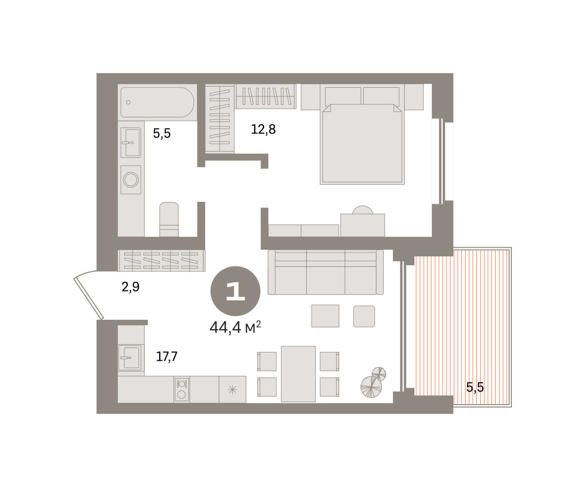 Однокомнатная квартира в новых домах «Южных кварталов» — это квартира с объединенной кухней-гостиной, отдельной спальней, ванной комнатой и нишами под хранение. Кухня-гостиная — это общественное пространство квартиры, где удобно собираться с семьей и друзьями. Здесь легко поместится зона приготовления пищи, стол со стульями для совместных трапез, мягкие места для отдыха и телевизор. Также в квартире спроектированы гардеробные и хозяйственные комнаты. Есть варианты квартир с тёплой лоджией, где можно разместить рабочее место, или собственной террасой на первом этаже. Купить однокомнатную квартиру в районе Южного автовокзала в Екатеринбурге выгодно напрямую от застройщика «Брусника».