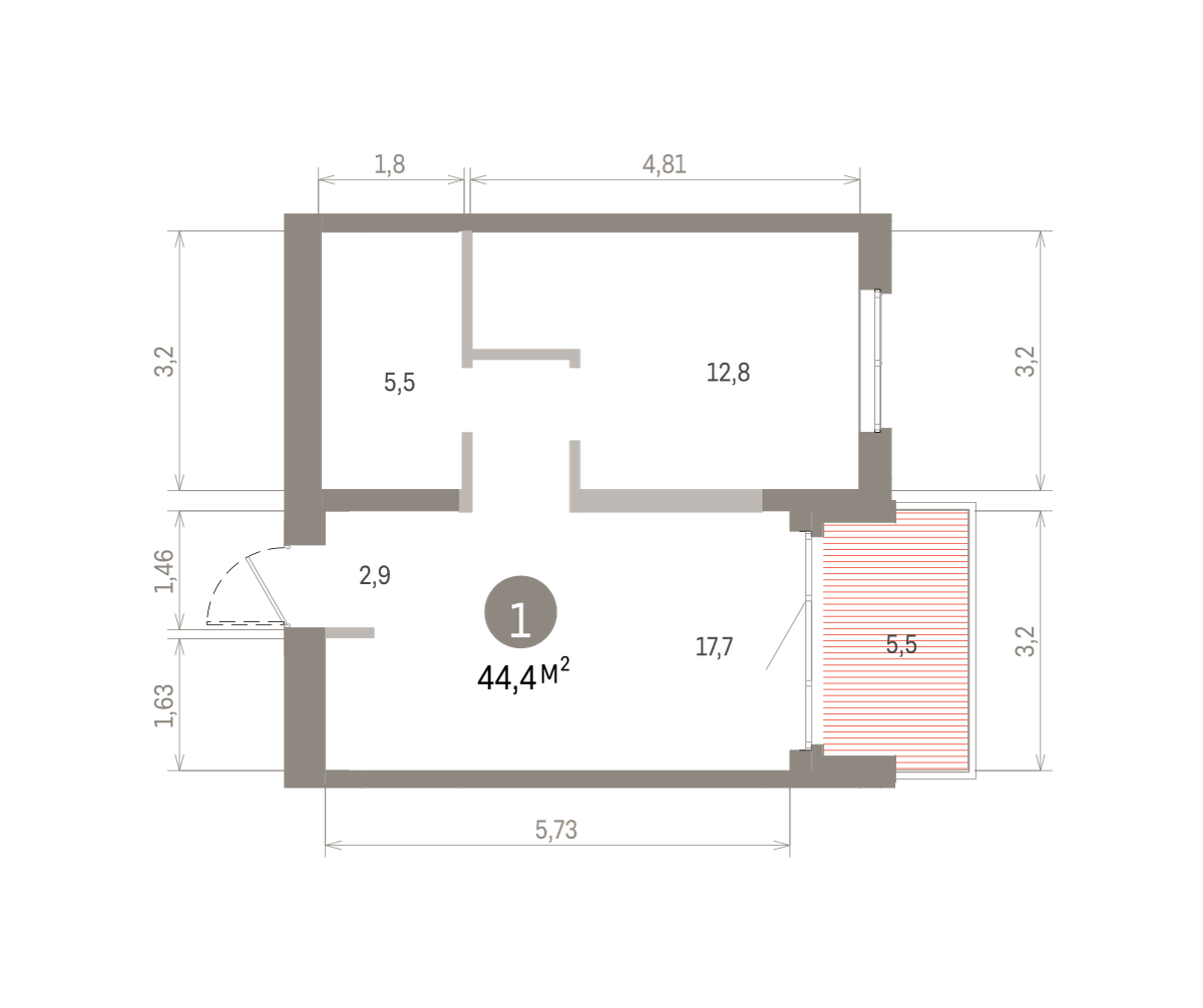 Квартира с кухней-гостиной и одной спальней в Южных кварталах. Особенности планировки: балкон, двойная выгода, предчистовая отделка.