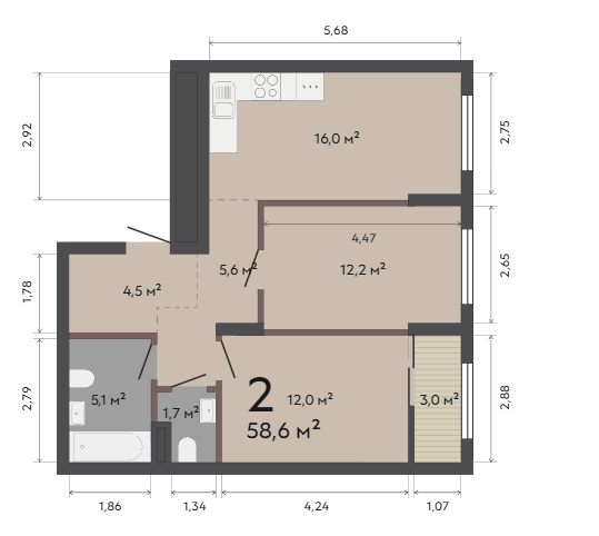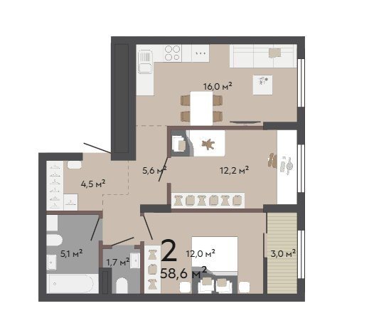 58.60 м² | 9 - 17 эт.