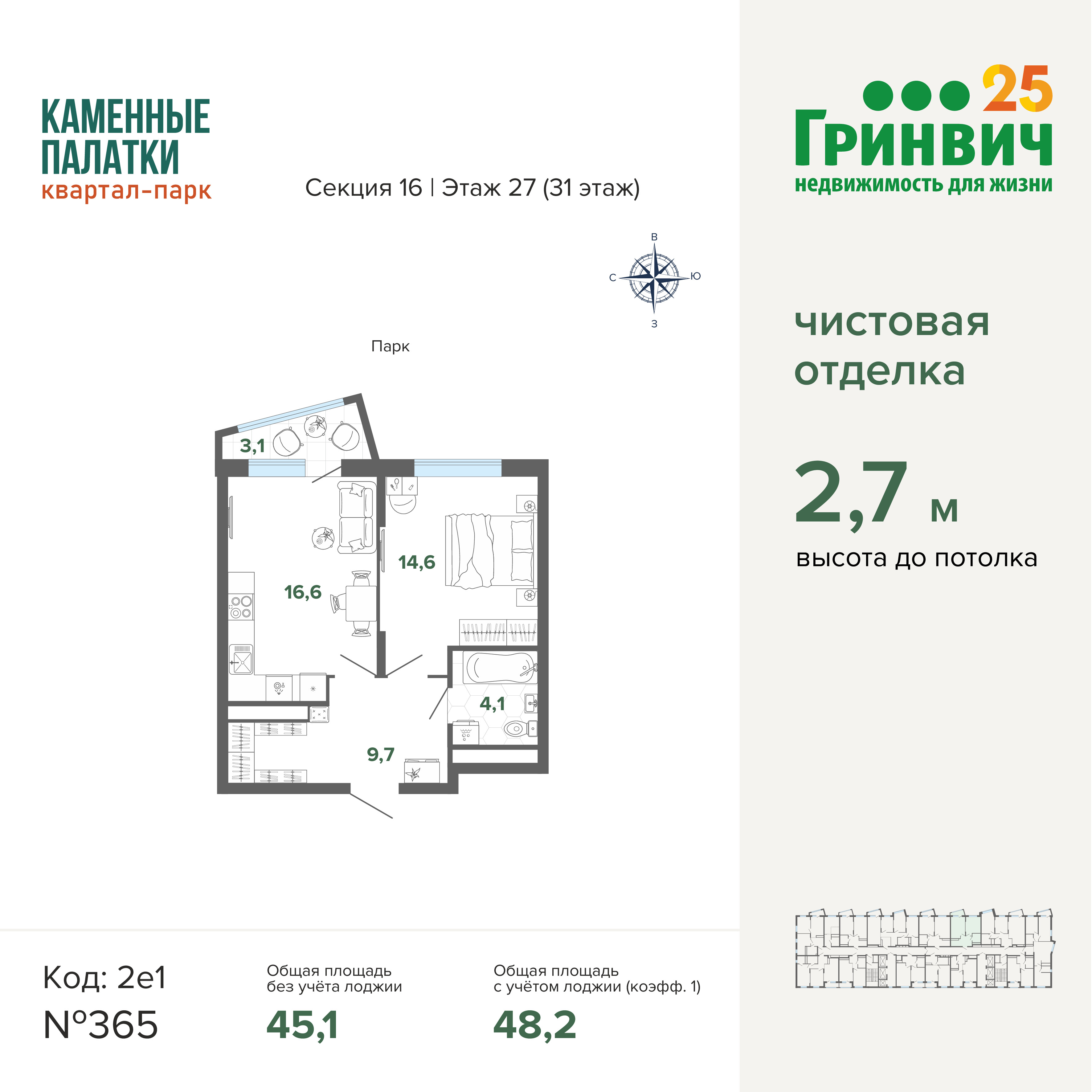 Продается квартира в современном Квартал-парке «Каменные Палатки» – новый жилой комплекс комфорт-класса расположен на границе микрорайонов ЖБИ и Втузгородок, в 15 минутах от центра города рядом с природным парком Каменные палатки и озером Шарташ.<br><br>В продаже 4 очередь (секция 16).<br>Срок сдачи – 4 квартал 2025 года<br><br>Преимущества квартир:<br><br>• Высокие потолки (2,7 м);<br>• Качественная чистовая отделка: входные двери, ламинат, обои под покраску, установлена сантехника;<br>• Горизонтальная разводка систем отопления – свободные стены;<br>• Счетчики на э/э, воду и тепло – ежемесячная экономия на коммунальных платежах;<br>• Сделаны входы для слаботочных сетей (интернет, телефон, цифровое телевидение).<br><br>Преимущества дома:<br>• Просторная закрытая придомовая территория;<br>• Прямо из комплекса выход в природный парк Каменные Палатки;<br>• Просторная наземная парковка и подземный паркинг;<br>• Муниципальный детский сад в 3й очереди на 200 мест;<br>• В жилом комплексе расположены ЖизньМарт, Монетка, Пятёрочка, пункты выдачи ЯндексМаркет, Ozon и Wildberries. Детский оздоровительный центр и кинологический клуб. <br>• В нескольких минутах от дома расположены: гимназия № 45, пять детских садов, гипермаркет «Мегамарт».