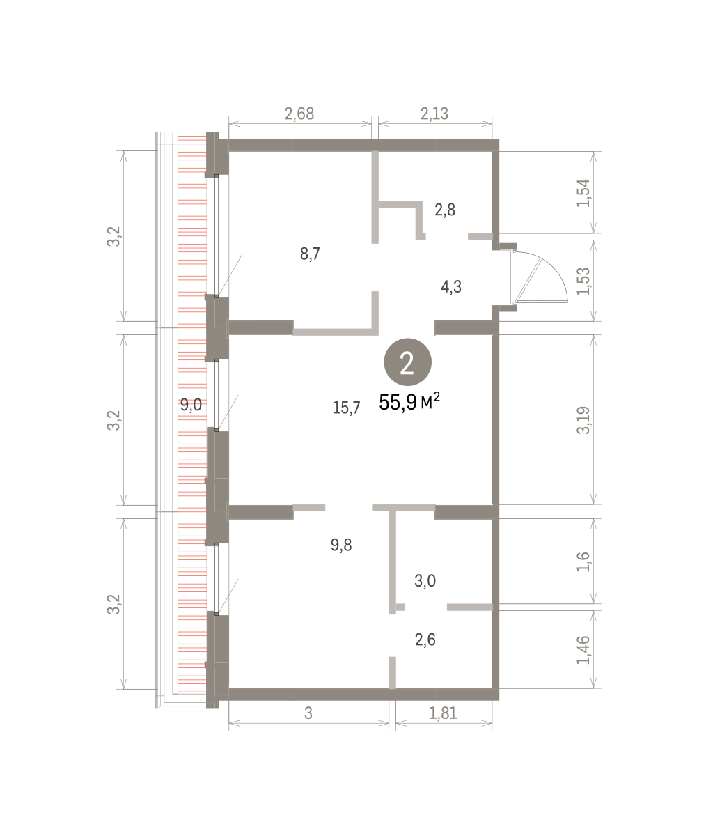 56.00 м² | 2 - 16 эт.