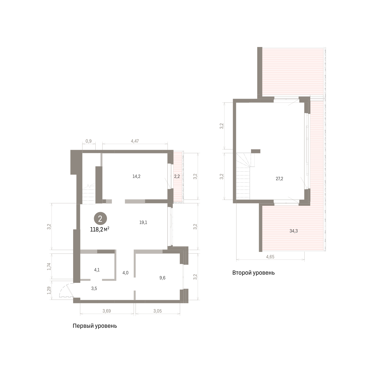 Двухуровневая квартира с кухней-гостиной и двумя спальнями в Южных кварталах. Особенности планировки: двухуровневая, окна в пол, окно в коридоре, предчистовая отделка, разнесённые спальни, терраса на крыше.