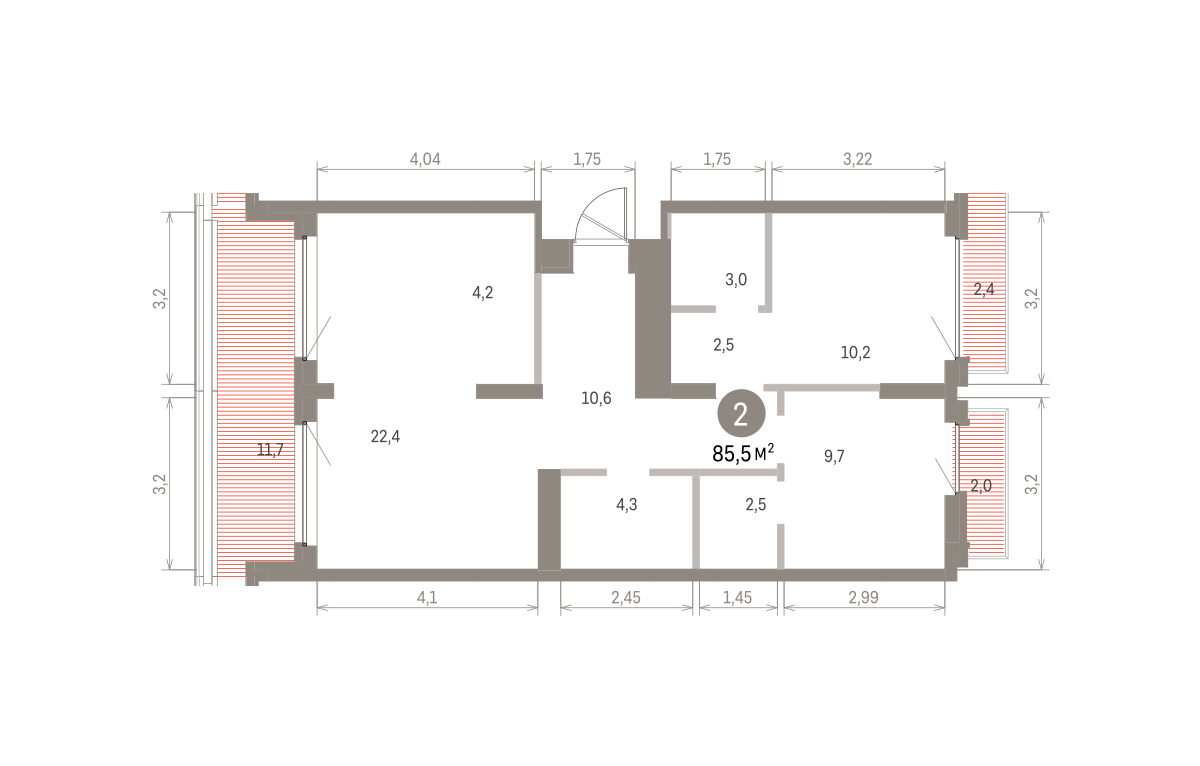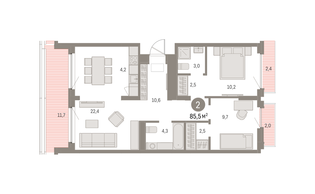 Квартира с кухней-гостиной и двумя спальнями в Бруснике в Академическом. Особенности планировки: балкон, вид во двор, гардеробная, мастер-спальня, окна на две стороны, предчистовая отделка, терраса на крыше.