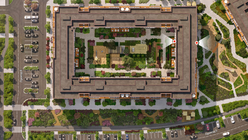 Квартира с кухней-гостиной и двумя спальнями в Бруснике в Академическом. Особенности планировки: вид во двор, второй санузел, гардеробная, двойная выгода, мастер-спальня, окна в пол, отдельный вход, панорамное остекление, постирочная, потолки 3 м и выше, предчистовая отделка, разнесённые спальни, терраса.