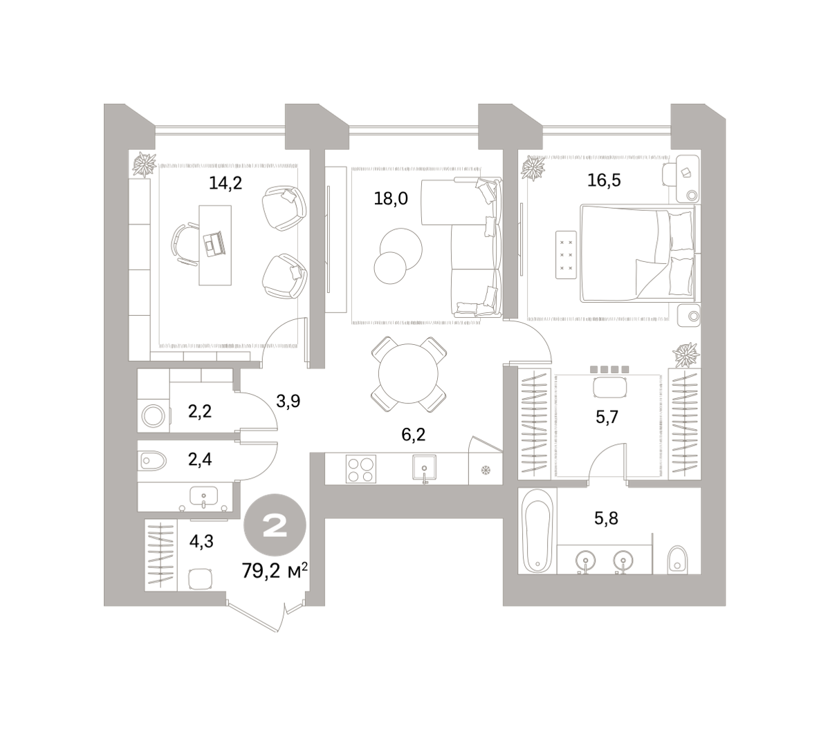 79.80 м² | 6 - 9 эт.