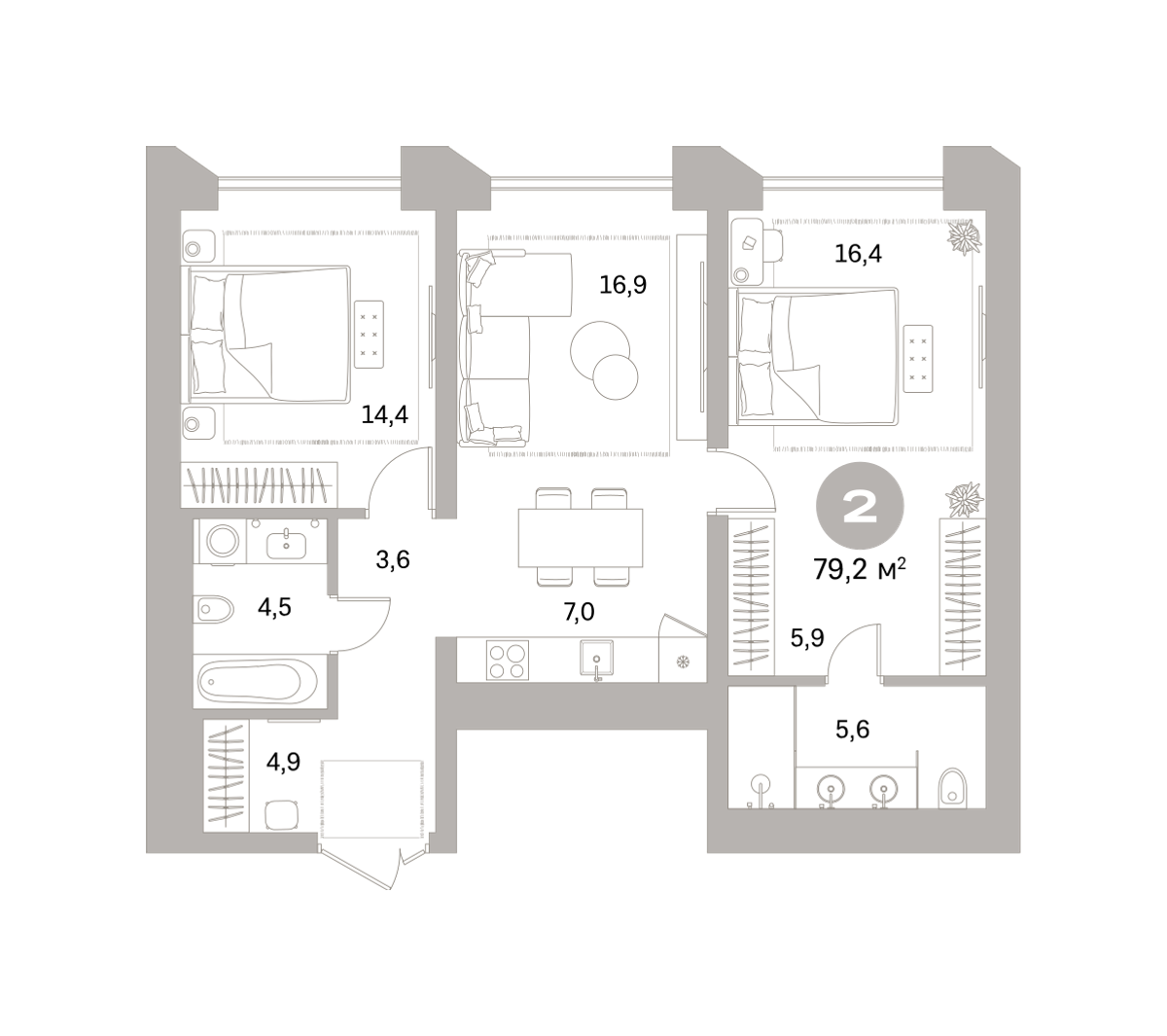 79.80 м² | 3 - 9 эт.